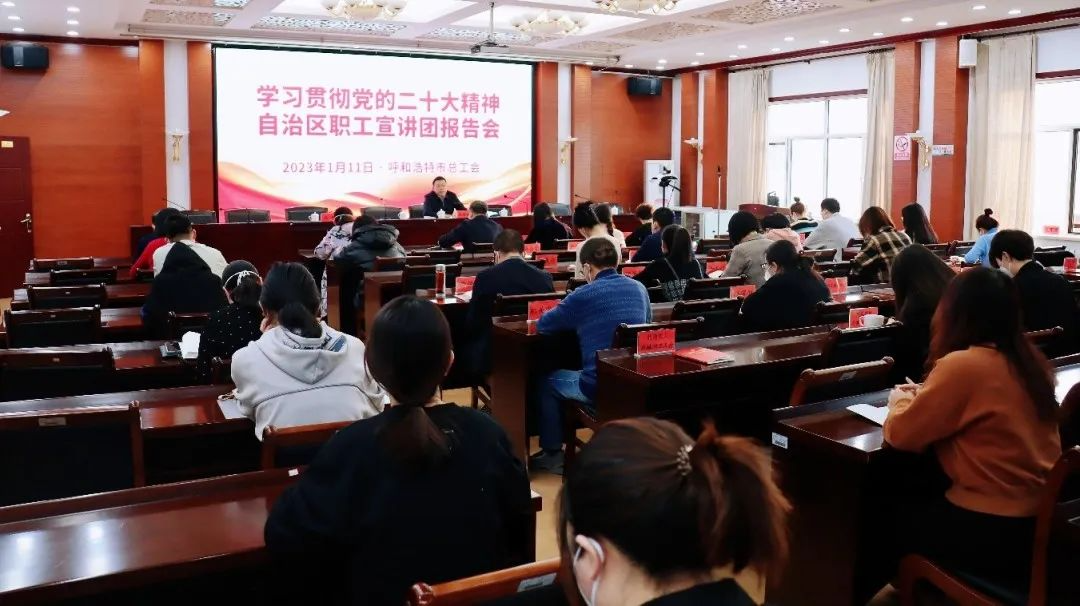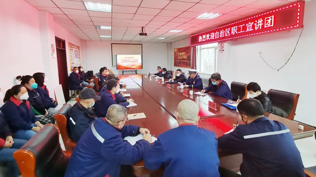 1月11日、12日,自治区职工宣讲团成员、自治区总工会一级巡视员赵雁滨一行,深入呼和浩特市总工会、呼和浩特市富泰热力光明热源厂宣讲党的二十大精神,并开展送温暖慰问。