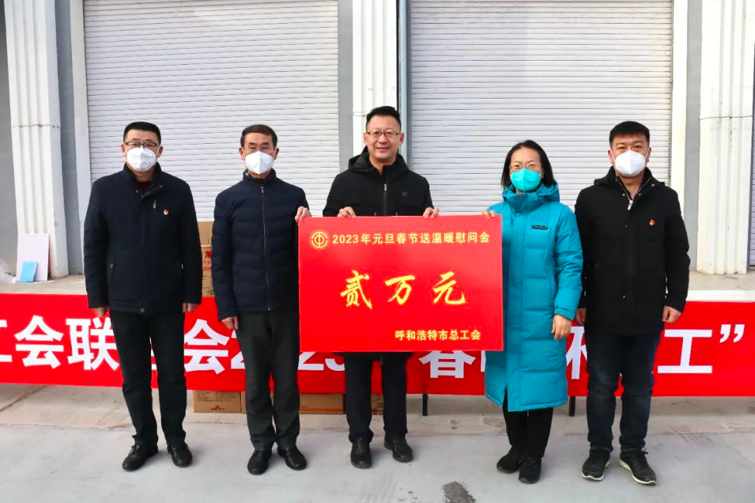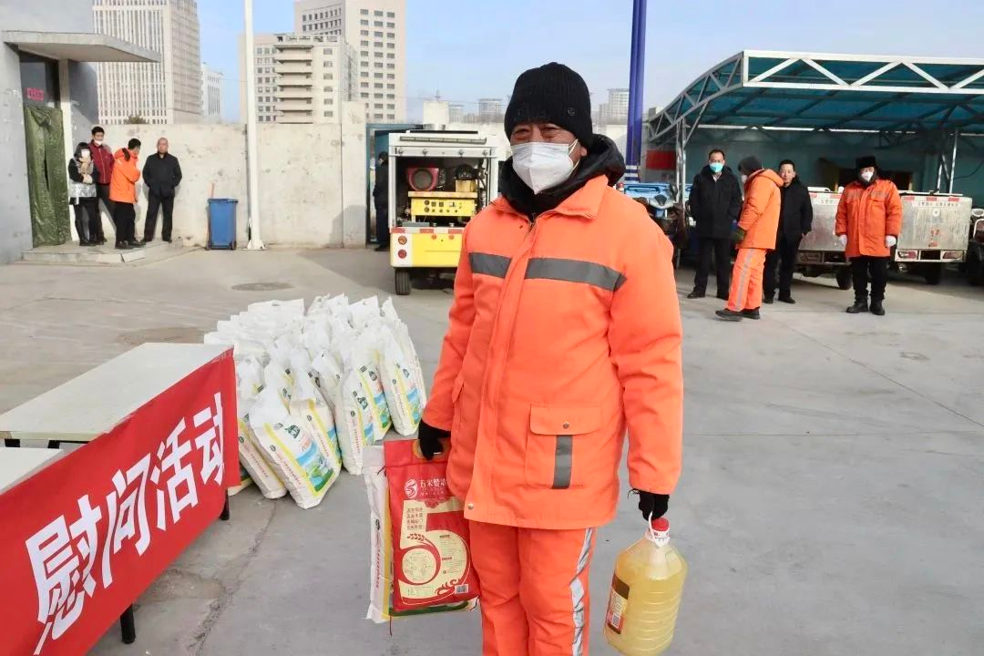 为在全社会大力弘扬劳动精神,展示环卫职工“宁愿一人脏,换来万家净”的精神风貌,激励我市环卫职工爱岗敬业,努力做好本职工作,2023年1月17日,呼和浩特市总工会深入到呼和浩特如意开发区公用事业有限公司开展慰问环卫工人活动,为环卫工人现场发放米面油慰问品。呼和浩特市三产服务业工会主席田喜武,呼和浩特市经济技术开发区工会联合会参加了慰问活动。