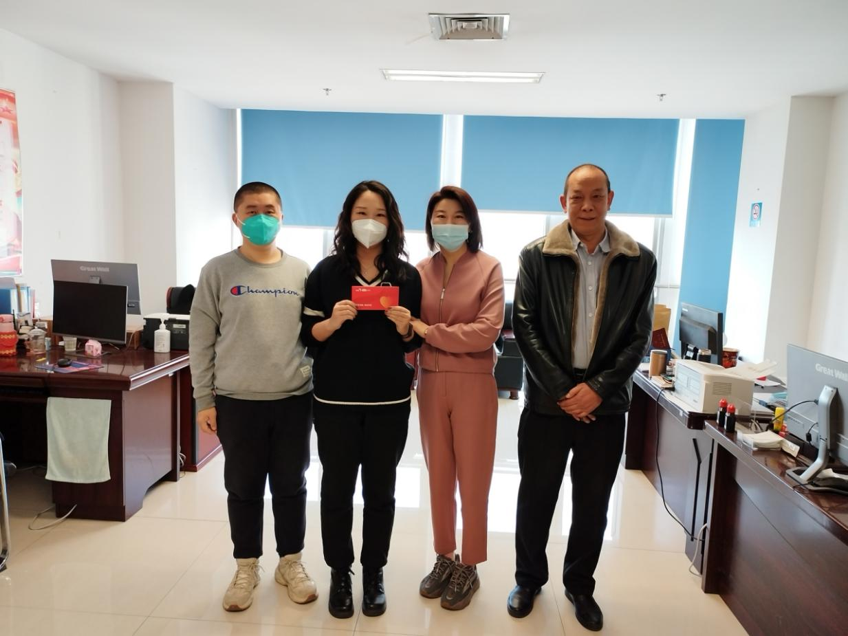 周旋副局长在工会相关负责人的陪同下,为一月份过生日的会展服务中心科员陈燕妮送上生日蛋糕卡,周局长代表商务局大家庭代表局党组、代表局工会,对她的辛勤工作和倾情付出的真诚感谢,希望她工作顺利,身体健康,阖家欢乐,以更加饱满的热情投入到商务各项工作中。陈燕妮同志脸上都洋溢着幸福和激动的笑容,表达了对党组织和工会关怀慰问的感谢,会将这双重关爱和温暖永记心中,立足各自工作岗位,接续奋斗,不辜负领导和同事们的关心及厚爱。