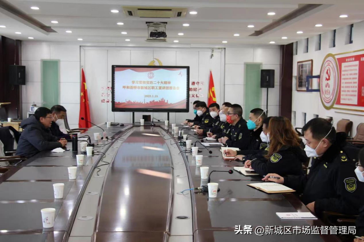 宣讲会上,新城区总工会领导紧扣党的二十大精神,结合工会工作和市场监管工作从党的二十大取得的重要成果,弘扬劳模、劳动、工匠精神,抓真事、真抓事,力克形式主义,提振干事创业精气神,强化学习等五个方面为与会干部职工进行了宣讲和解读。
