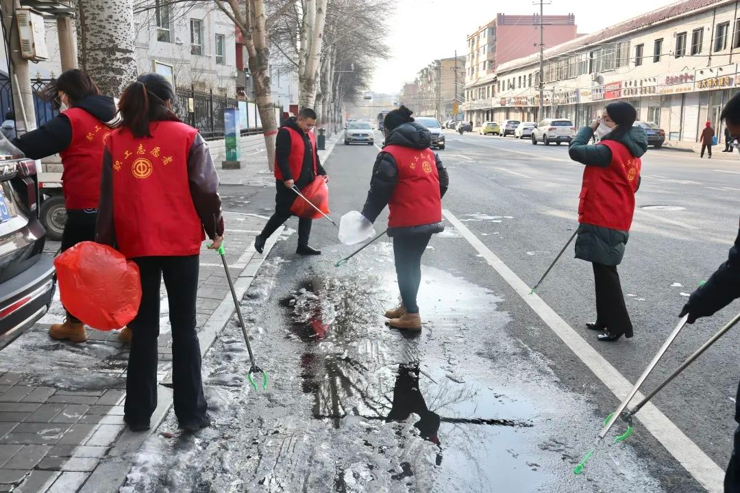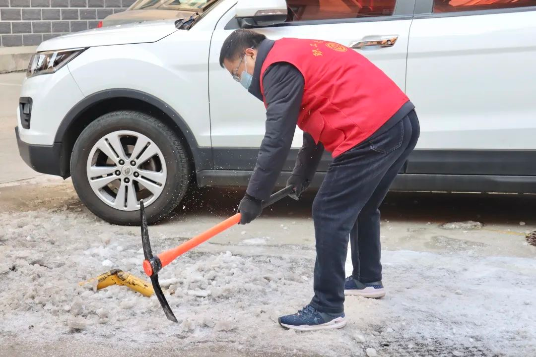 活动中,第三党支部党员们身穿志愿者马甲,穿梭在居民小区楼宇中间,认真清理道路两侧、小区出入口、绿化带、走廊等公共区域随意丢弃的塑料袋、烟头和其他杂物垃圾,确保不留卫生死角;对小区院内、街边冰雪覆盖的路面进行了碎冰、铲雪及清扫,消除了居民群众出行的安全隐患,为群众出行保驾护航;对小区各楼道门口、人行道、楼道开展排查,将乱停乱放的车辆摆放规范,确保居民安全出行,同时,对随意乱停放车辆的居民及时进行了劝导,鼓励居民群众从身边的小事做起,做创建文明城市的参与者。