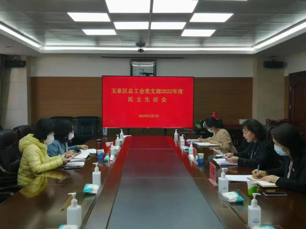 按照中共玉泉区纪委机关、区委组织部关于2022年度民主生活会的通知要求,2月7日,玉泉区总工会党支部召开2022年度民主生活会。区总工会党支部书记托娅主持会议,全体班子成员参加会议。第二督导组到会指导。