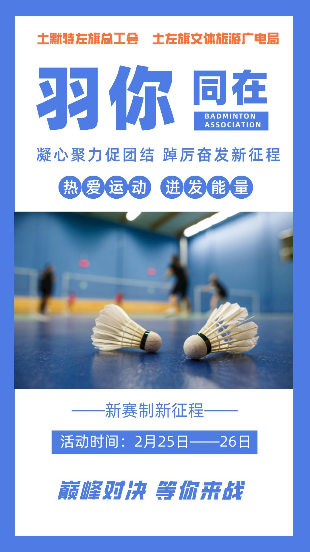 为丰富和活跃全旗干部职工的业余文体生活,增强广大干部职工的身体素质,展示全旗干部职工团结拼搏、开拓进取、奋发向上的精神风貌,促进全民体育健身事业的发展,营造全民健身的良好氛围。土左旗总工会、土左旗文体旅游广电局决定举办“凝心聚力促团结 踔厉奋发新征程”2023年全旗职工羽毛球比赛,欢迎全旗广大职工积极报名参赛。