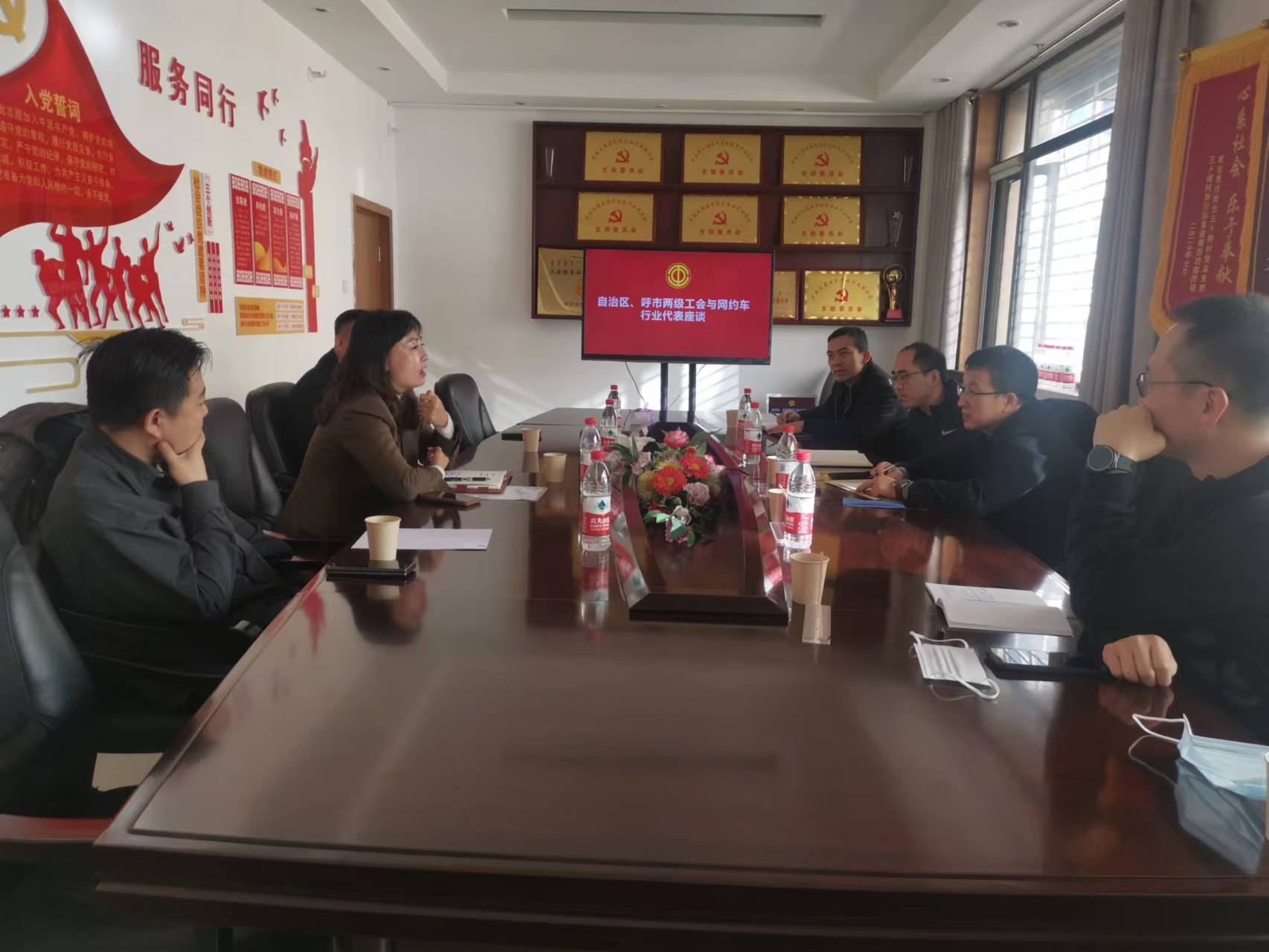 2月24日上午,自治区建筑建材交通机冶工会联合呼和浩特市总工会召开网约车行业座谈会,自治区建筑工会副主席杨志鸿、呼和浩特市总工会副主席云娜、呼和浩特市网约车工会联合会主席李健、滴滴出行呼和浩特分公司政府事务经理曹静等参加会议。