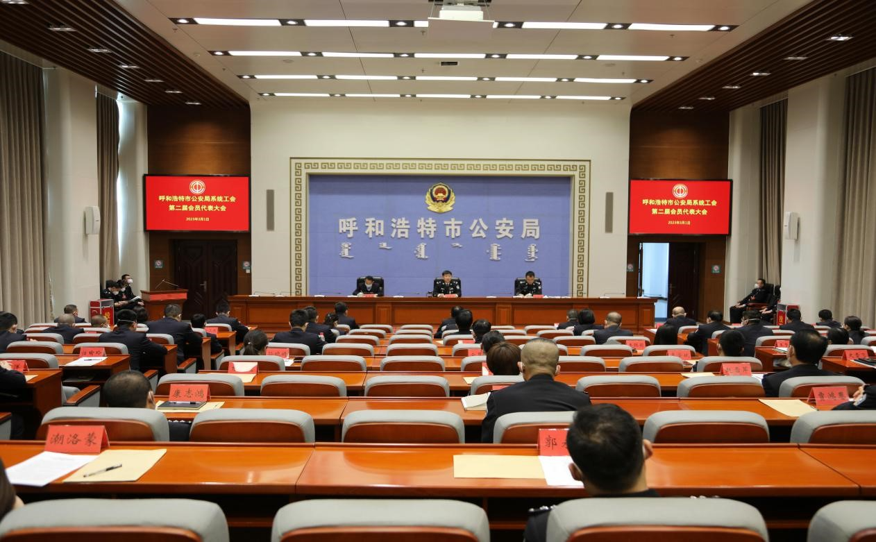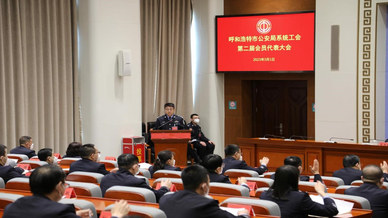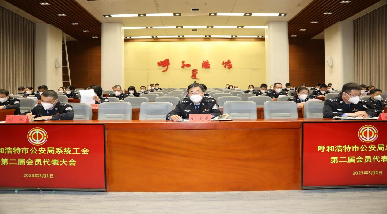 2023年3月1日,呼和浩特市公安局系统工会在雄壮的国歌声中,组织召开了工会委员会换届选举大会。市局党委副书记、常务副局长何青海出席会议并讲话,市局党委委员、政治部主任王钟琦主持会议,市局党委委员、市纪委驻市公安局纪检组组长李星超到会监督指导。共72名会员代表参会。