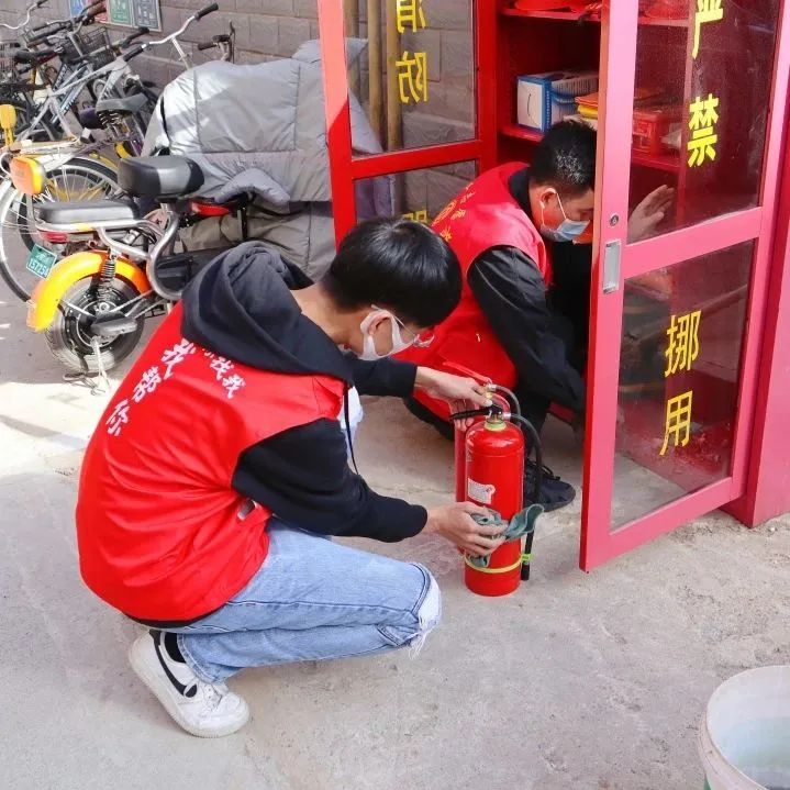进入小区后,党员志愿者们分头行动,用夹子、扫把、抹布等清洁工具,对小区绿化休闲区的垃圾进行了集中清理、规范了乱停乱放的电动车、清洗了小区垃圾桶和消防柜等,打造干净、整洁的卫生环境。