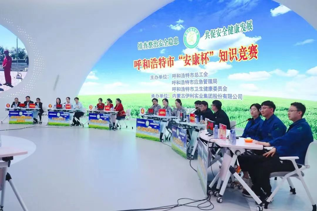3月9日下午,由呼和浩特市总工会、市应急管理局、市卫生健康委员会主办,内蒙古伊利实业集团股份有限公司承办的呼和浩特市“安康杯”知识竞赛在伊利智慧健康谷举办。自治区总工会经济部二级调研员刘云天、市总工会副主席冀罕钢、市卫生健康委员会四级调研员温志海、内蒙古伊利实业集团股份有限公司副总裁付莉和工会副主席王爱清等有关领导参加知识竞赛活动。