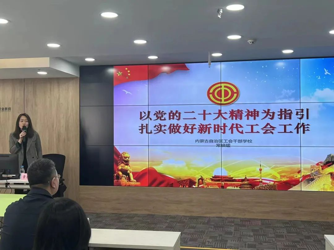 培训邀请了内蒙古自治区工会事业发展中心副教授常晓媛以“党的二十大精神为引领,扎实做好新时代工会工作”为题进行了深入浅出的讲解。常教授通过PPT演示、现场互动等形式,将工会业务知识与日常工作相融合,使参训人员对各项业务有了更深刻的认识。