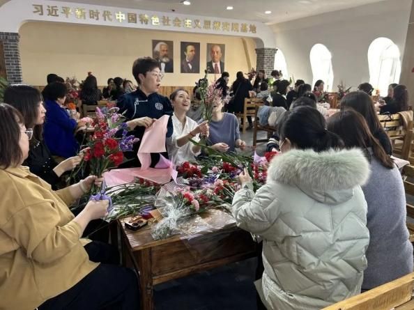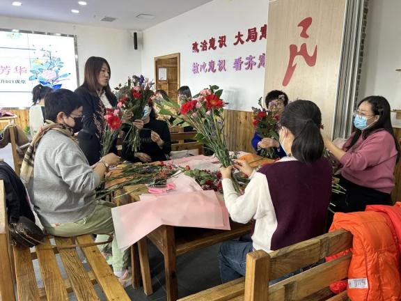 春风十里百花盛,灼灼其华不及卿。在这个暖意融融的春日,第113个“三八”国际妇女节即将来临,为丰富我区女职工精神生活,陶冶情操,展现亮丽风采,凝聚“她”力量,3月7日,玉泉区总工会在玉泉区党群活动服务中心举办“三八”妇女节女性素养提升DIY课堂。特邀花艺技师杜倩为现场50余名女职工教授插花技巧,为生活增添一抹“靓色”。