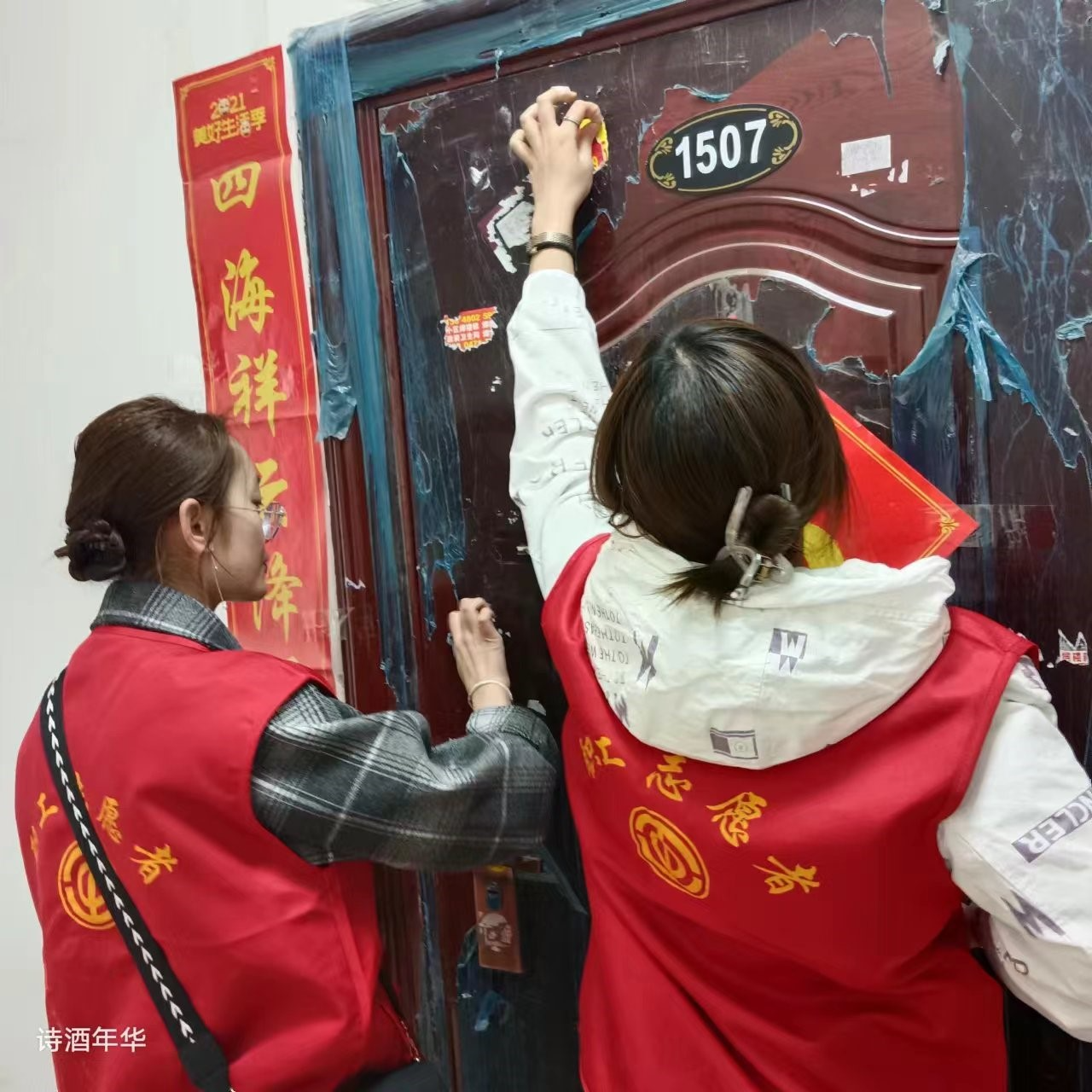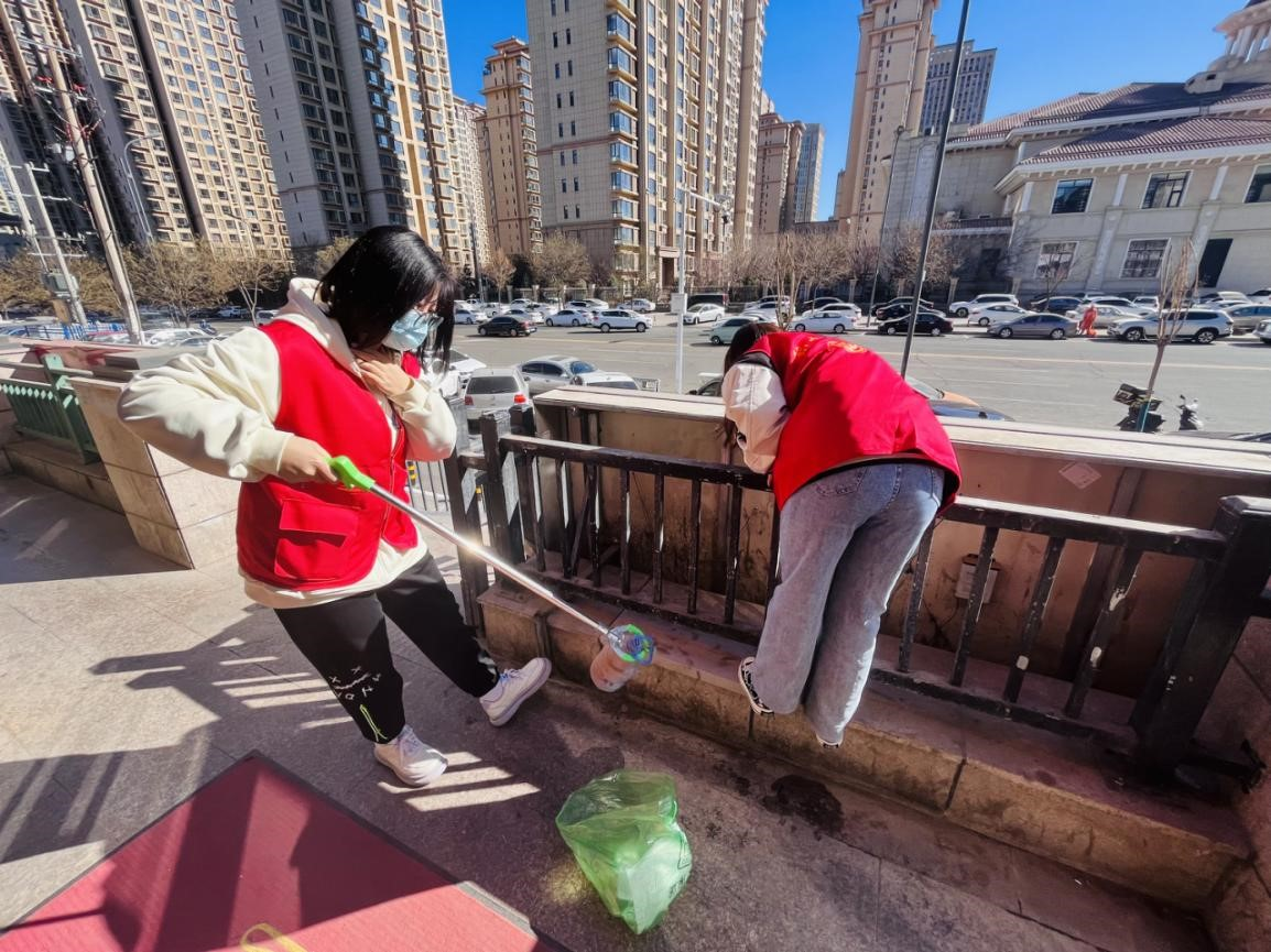 志愿者们对小区院落的垃圾、杂物、小广告及乱停乱放等进行集中清理、整治。