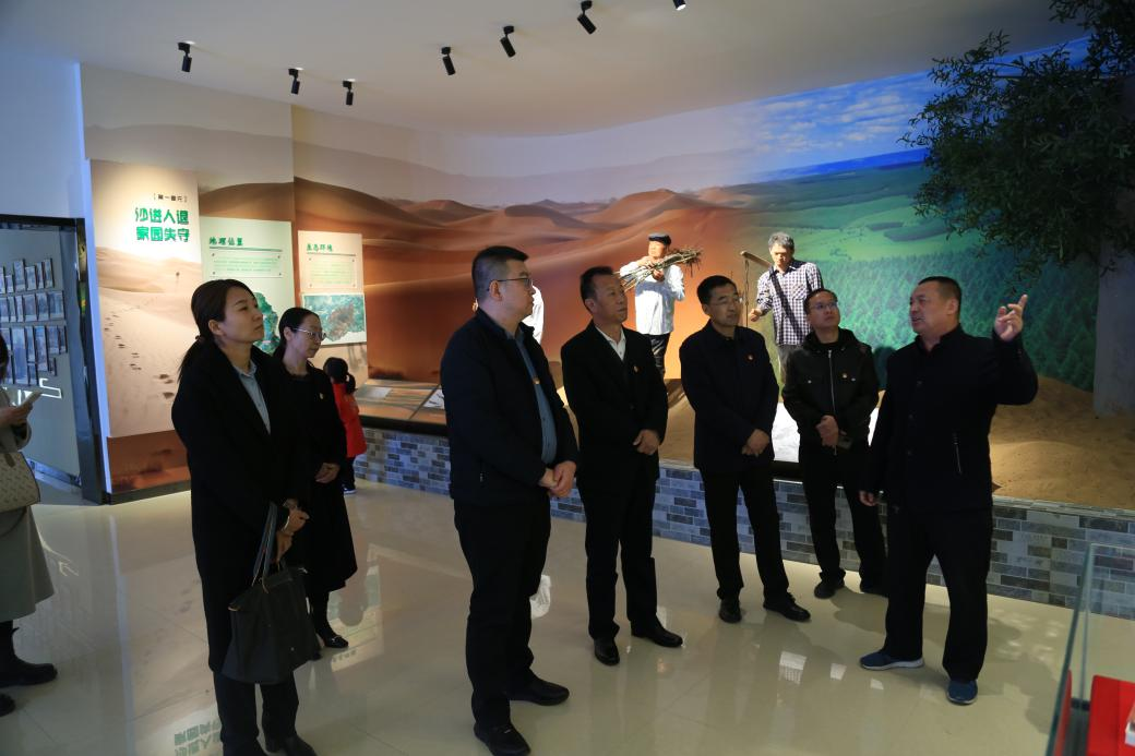 在工作人员的统一安排和引导下,全体人员参观了治沙精神陈展馆的各个展区,以及80年代治沙队工作与生活场景等,认真聆听讲解,了解时任县长的云福祥同志率领120名青年组成的专业队是如何使白二爷沙坝的生态环境得到改善的,如何取得造林种草成果的,一起重温了白二爷沙坝一代代育林人在大漠荒沙谱写的造林传奇。