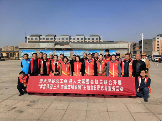 为进一步宣传弘扬雷锋精神和“奉献、友爱、互助、进步”的志愿服务精神,3月6日下午,县总工会、县人大常委会机关联合举办“学雷锋迎三八 共创文明家园”主题党日暨志愿服务活动。县人大常委会副主任、总工会主席刘在俊,县人大常委会副主任多化雄,县总工会党组书记、常务副主席姜培成,县总工会副主席赵霞等领导参加活动。
