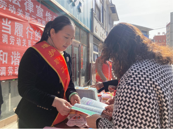 为全面推动落实国家妇女发展纲要有关精神,贯彻落实女职工劳动保障有关法律法规、政策,切实保障妇女职工平等就业、同工同酬、社会保险、劳动安全卫生、休息休假、职业培训等合法权益,3月9日,县总工会联合县人社局、县工商联共同开展女职工劳动保障法律宣传活动。