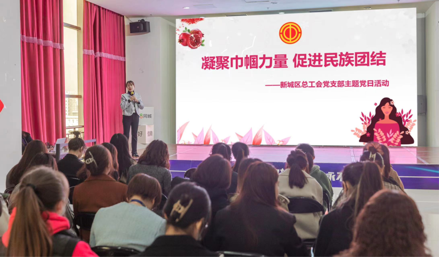 为进一步铸牢中华民族共同体意识,全面深入学习贯彻好党的二十大精神。3月8日,新城区总工会党支部组织全体党员干部职工走进内蒙古国风网络技术有限公司开展“凝聚巾帼力量 促进民族团结”主题党日活动。