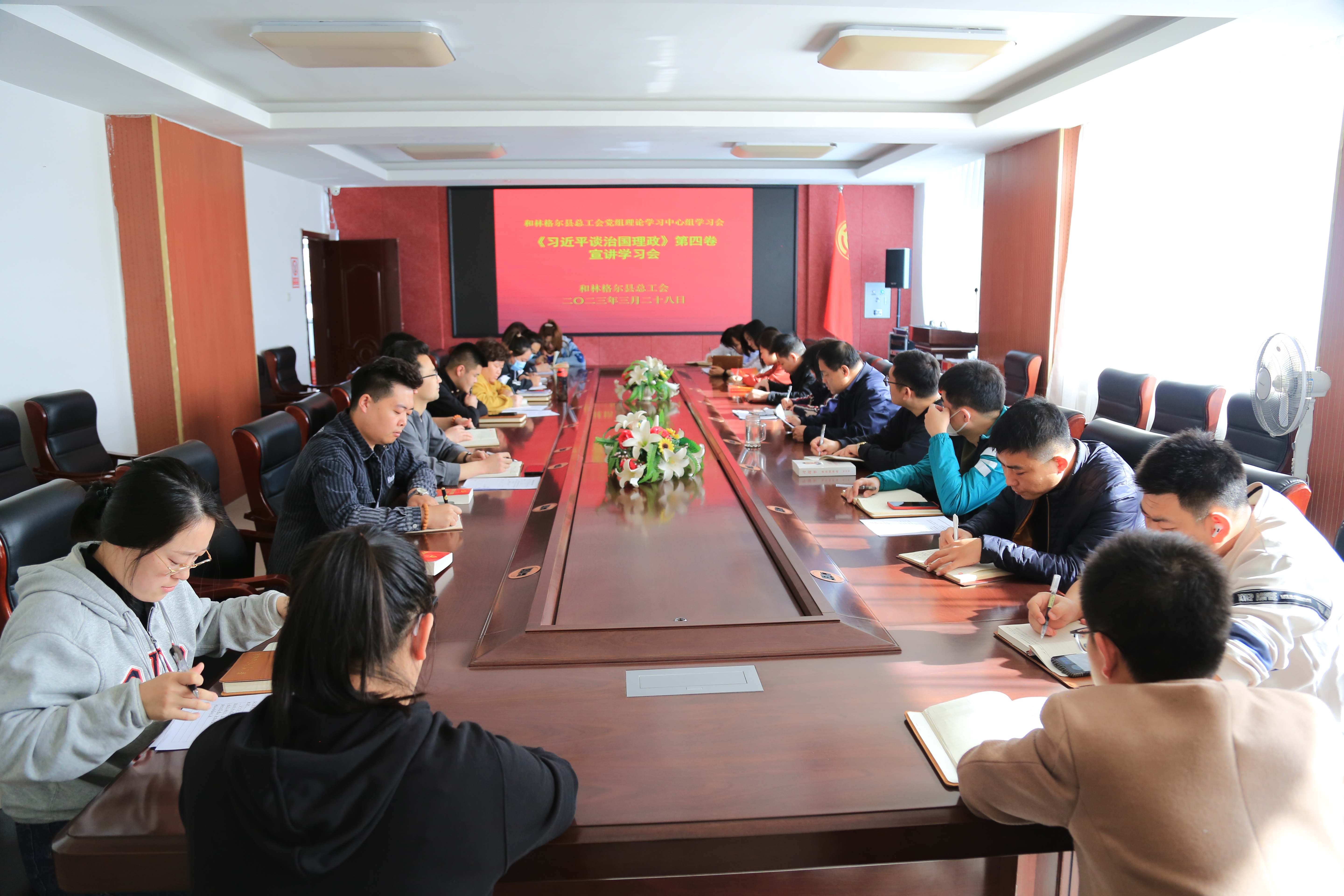 3月28日上午,和林格尔县总工会党组召开理论学习中心组学习(扩大)会议,县总工会党组书记伊俊文在二楼会议室主持召开学习《习近平谈治国理政》第四卷宣讲学习会,县总工会全体工作人员参学参会。