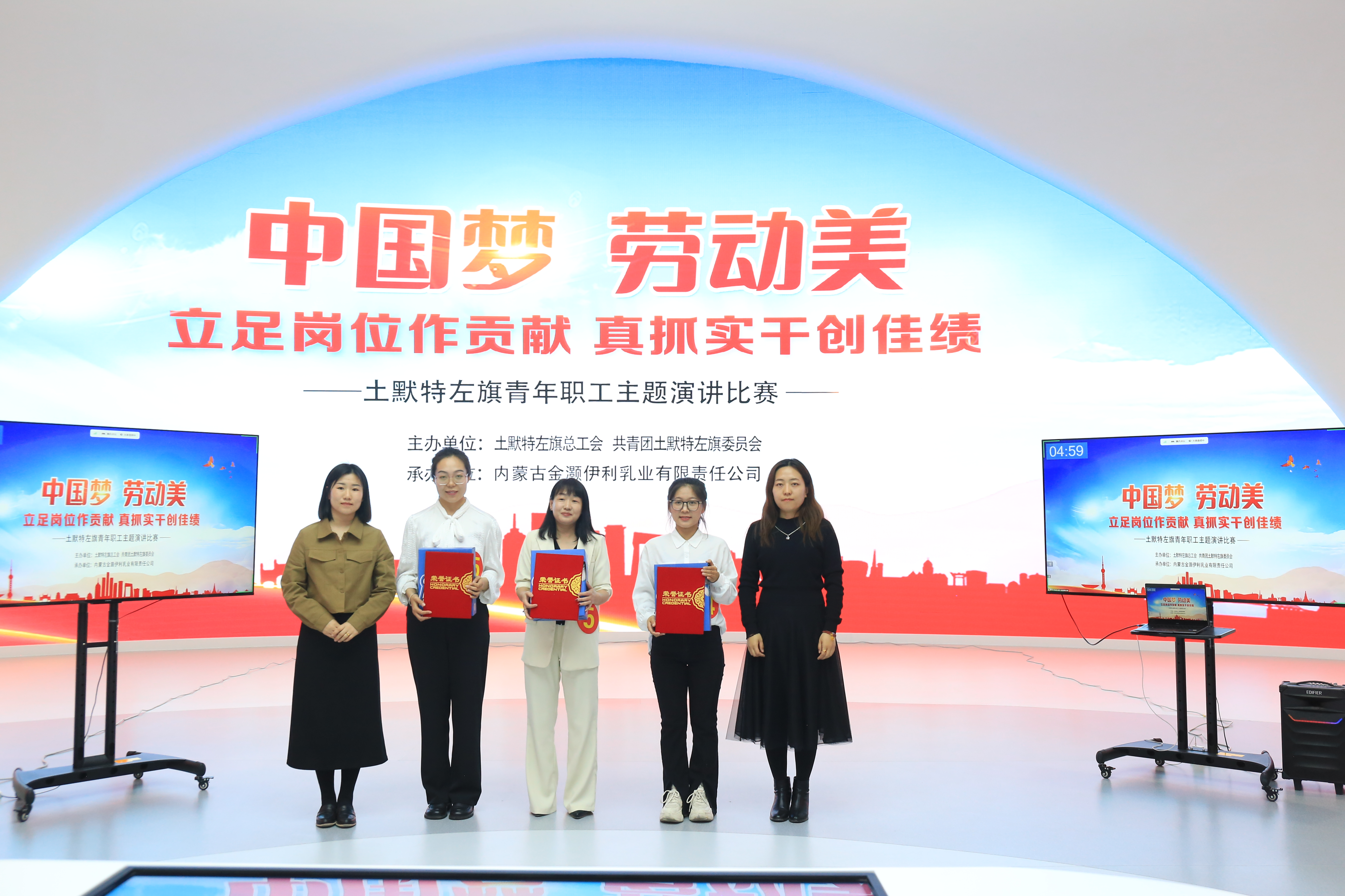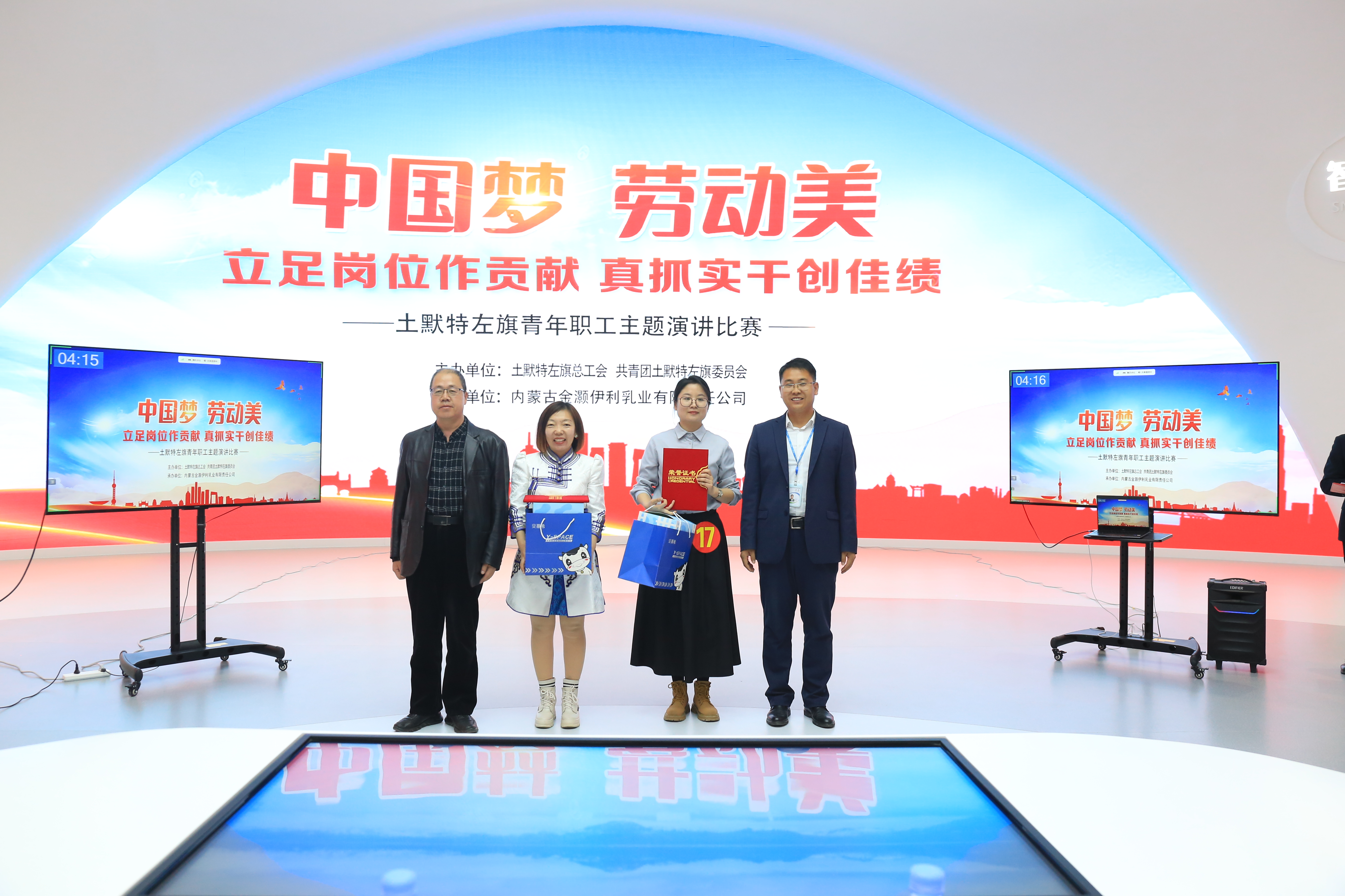 4月1日下午,由土默特左旗总工会、共青团土默特左旗委员会主办,内蒙古金灏伊利乳业有限责任公司工会承办的“中国梦·劳动美——立足岗位作贡献 真抓实干创佳绩”全旗青年职工主题演讲比赛在伊利现代智慧健康谷精彩落幕。