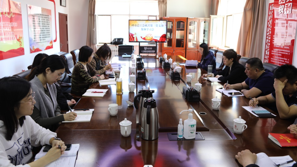 4月7日,呼和浩特市总工会机关第三党支部组织召开集体学习会。