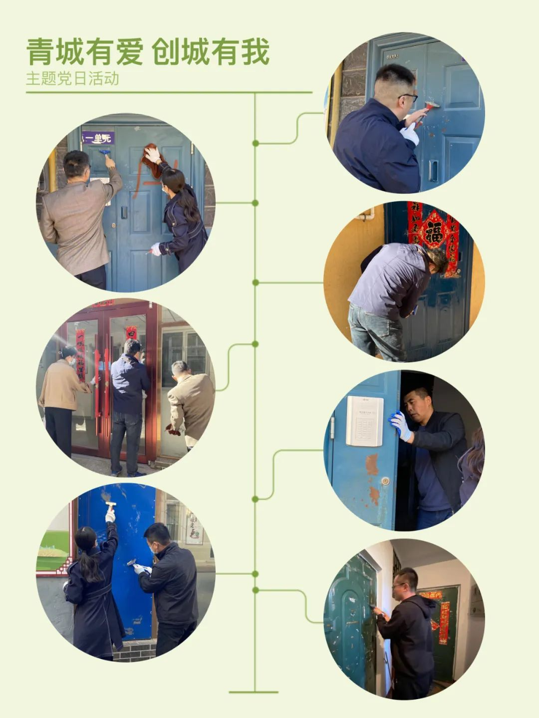 活动现场,党员们在小区楼道擦玻璃、清洗楼道门、清除小广告,清理小区环境卫生,充分发扬党员干部不怕苦不怕累的优良作风。