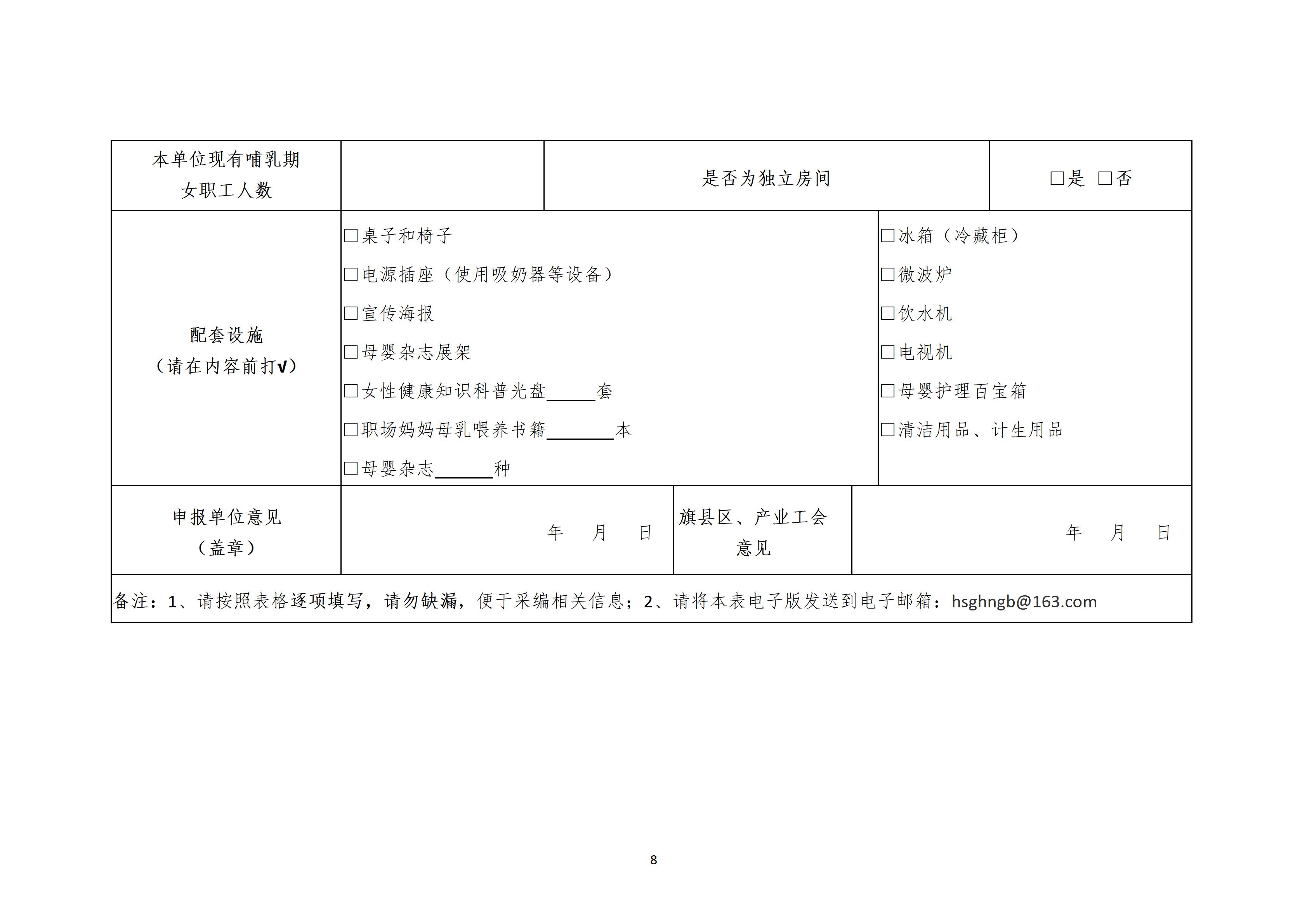 附:“女职工休息哺乳室”登记和申报表