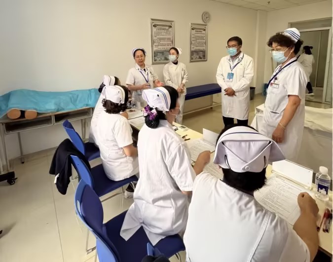 考试过程中,副院长赵红兵来到现场巡视督导,详细查看了考核内容及流程,观看了各站点考核现场。赵院长指出,护理技能竞赛对促进医院护理人才建设起到积极的推动作用,希望选手们技成于练,业精于勤,切实提升护理人员在临床工作中的业务基础和实践能力。
