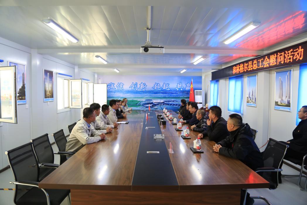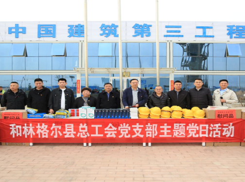 3月16日下午,和林格尔县总工会党支部联合和林格尔县机场建设服务中心党支部开展“党旗护航强安康、关爱职工送劳保”主题党日活动。和林格尔县总工会党组书记、党支部书记伊俊文,和林格尔县机场建设服务中心主任、党支部书记崔文斌带队组成慰问组,向奋战新机场建设的中建三局全体职工进行慰问。