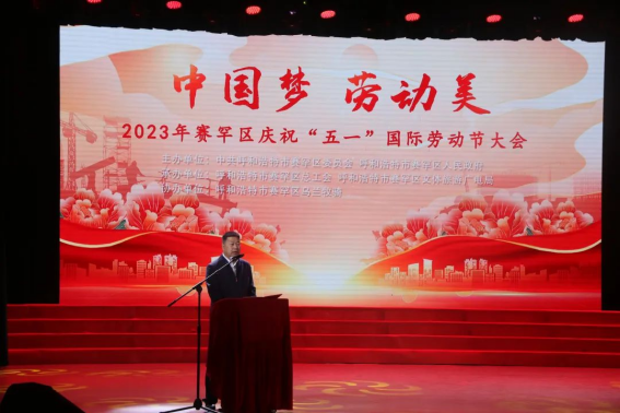 春风浩荡满目新,扬帆奋进正当时。为庆祝“五一”国际劳动节,4月28日下午,由赛罕区委、区政府主办,赛罕区总工会、赛罕区文体旅游广电局承办,赛罕区乌兰牧骑协办的“中国梦 劳动美”2023年赛罕区庆祝“五一”国际劳动节大会在呼和浩特市乌兰牧骑剧院举行。呼和浩特市总工会党组成员、副主席云娜出席。