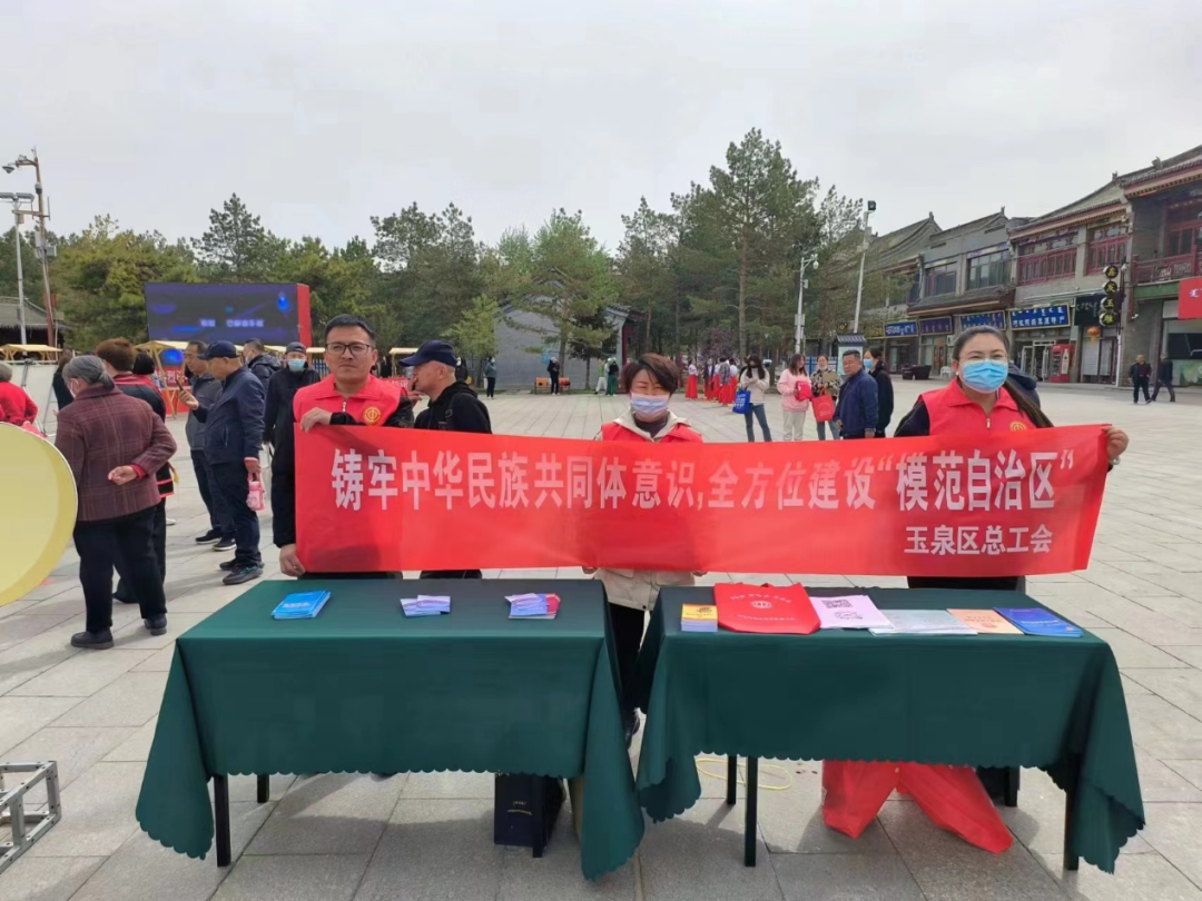 为全面学习贯彻习近平总书记关于加强和改进民族工作的重要思想,不断增强中华民族共同体意识和民族凝聚力,更深入地宣传好党的民族政策,4月26日,以“铸牢中华民族共同体意识,全方位建设‘模范自治区’”为主题的民族政策宣传月启动仪式在大召广场火热举行。玉泉区总工会参加了此次民族政策宣传月启动仪式。