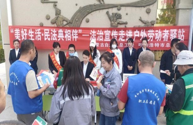 职工法治文化教育站主要业务范围:开展职工法治文化宣传;提供工会法律知识咨询服务;参与职工劳动争议调解。在使用法律过程中,遵循“重大决策依法、开展工作合法、遇到问题找法”这一思路,把用法作为学法的着眼点和落脚点,将法律意识贯穿于整个工作中。活动现场还为户外劳动者们开展了“美好生活·民法典相伴”法治宣传活动。