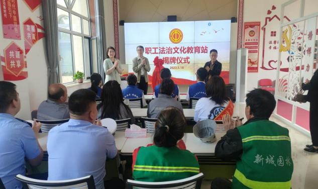 为广泛提高职工群众法律素养,运用法治思维和法治方式解决涉及职工群众切身利益的矛盾和问题,5月18日, 自治区总工会在新城区户外劳动者驿站“劳动者港湾”挂牌成立职工法治文化教育站,自治区总工会党组成员、副主席傲木格,法工部副部长程伟,二级调研员钥苏拉图,市总工会法工部部长任剑平,新城区人大常委会副主任、总工会主席吴红莲参加揭牌仪式。