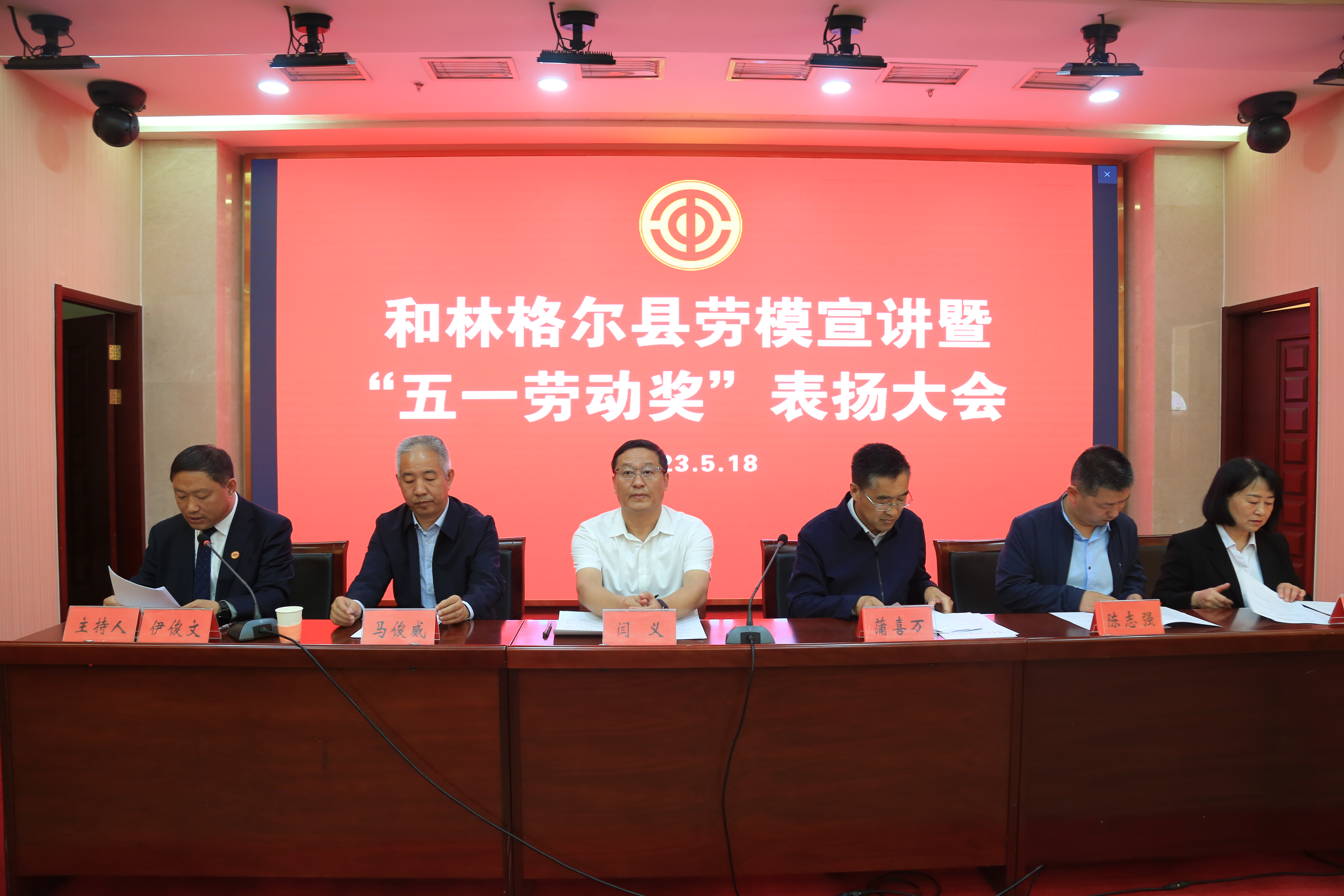 为深入学习贯彻党的二十大精神,大力弘扬劳模精神、劳动精神、工匠精神,团结激励广大干部职工爱岗敬业、拼搏奉献。5月18日上午,和林格尔县总工会在县宾馆三楼会议室召开2023年和林格尔县劳模宣讲暨“五一劳动奖”表扬大会。县委副书记、政法委书记闫义,县人大常委会副主任、总工会主席蒲喜万,县政协副主席马俊威,县委办副主任陈志强,县总工会党组书记伊俊文,县总工会党组成员、副主席孙瑞出席大会。