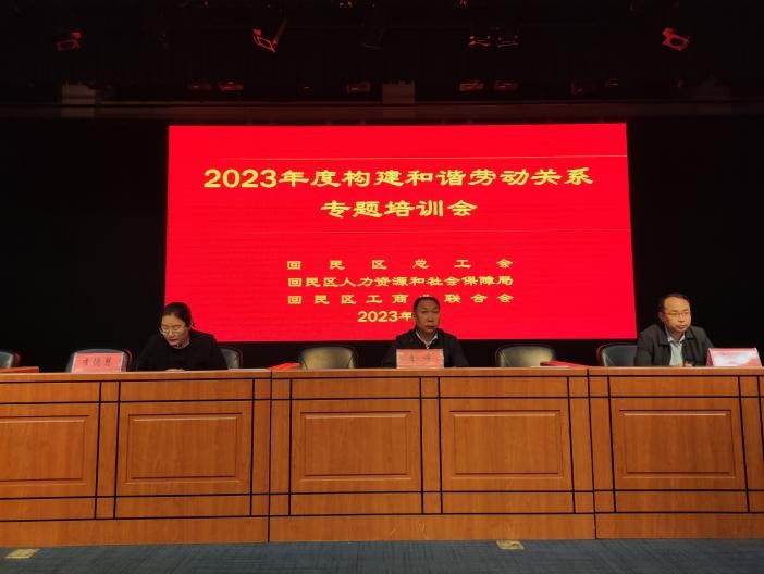 会议由回民区人力资源和社会保障局副局长李德慧主持,回民区总工会副主席李峰围绕构建和谐劳动关系重点形势任务进行讲话。他强调,此次培训会旨在加强部门联动、凝聚合力,和谐劳动关系是广大企业和职工共同关心的热门话题,大家互相学习是为了进一步推进和谐劳动关系取得新的成就。