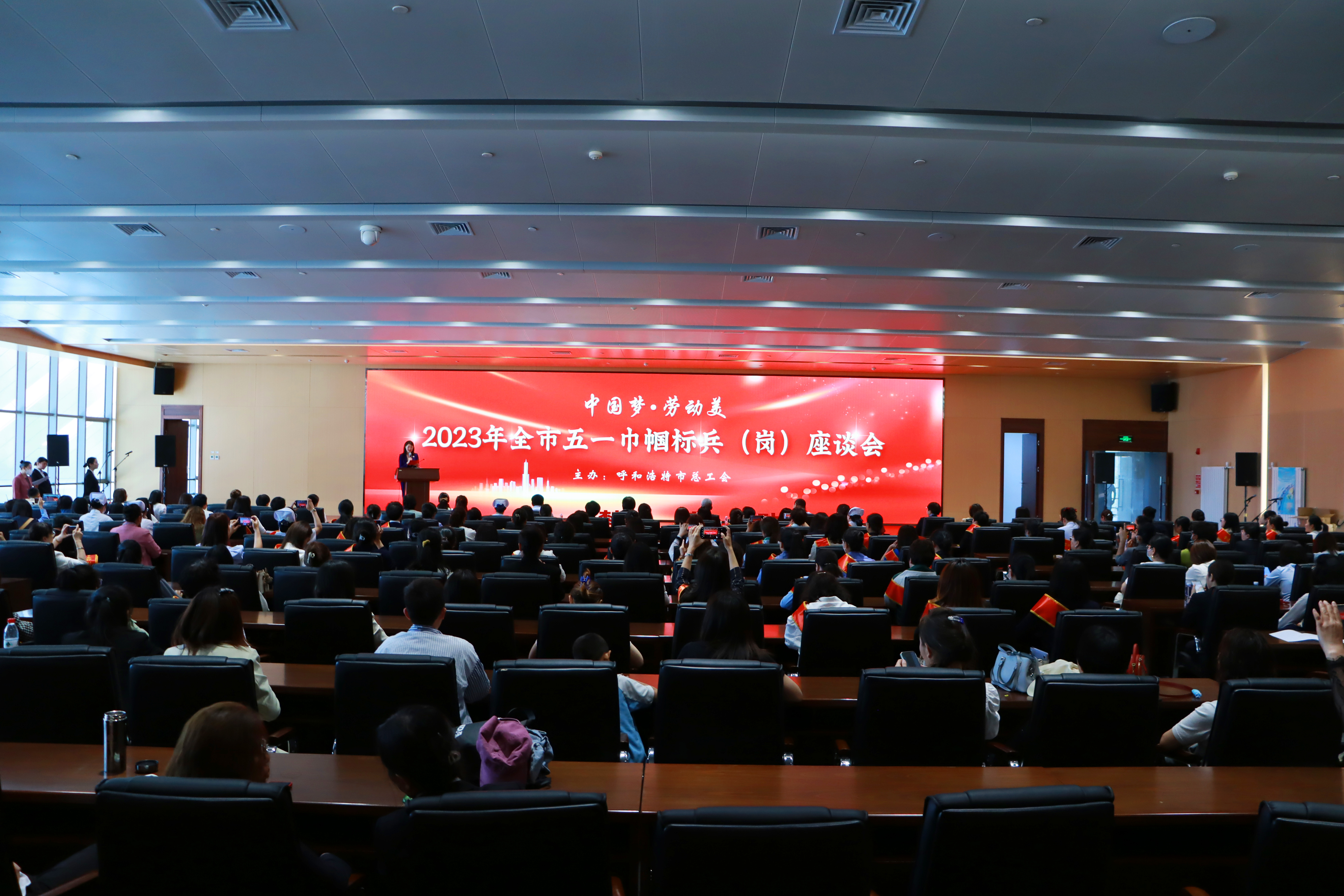 为大力弘扬劳模精神、劳动精神、工匠精神,鼓舞激励广大女职工立足新时代、担当新使命、展现新作为,5月27日,呼和浩特市总工会召开2023年全市五一巾帼标兵岗(标兵)座谈会。呼和浩特市人大常委会副主任、总工会主席云玉美,呼和浩特市总工会党组书记、副主席汪俊亭,呼和浩特市总工会副主席云娜等领导出席会议。