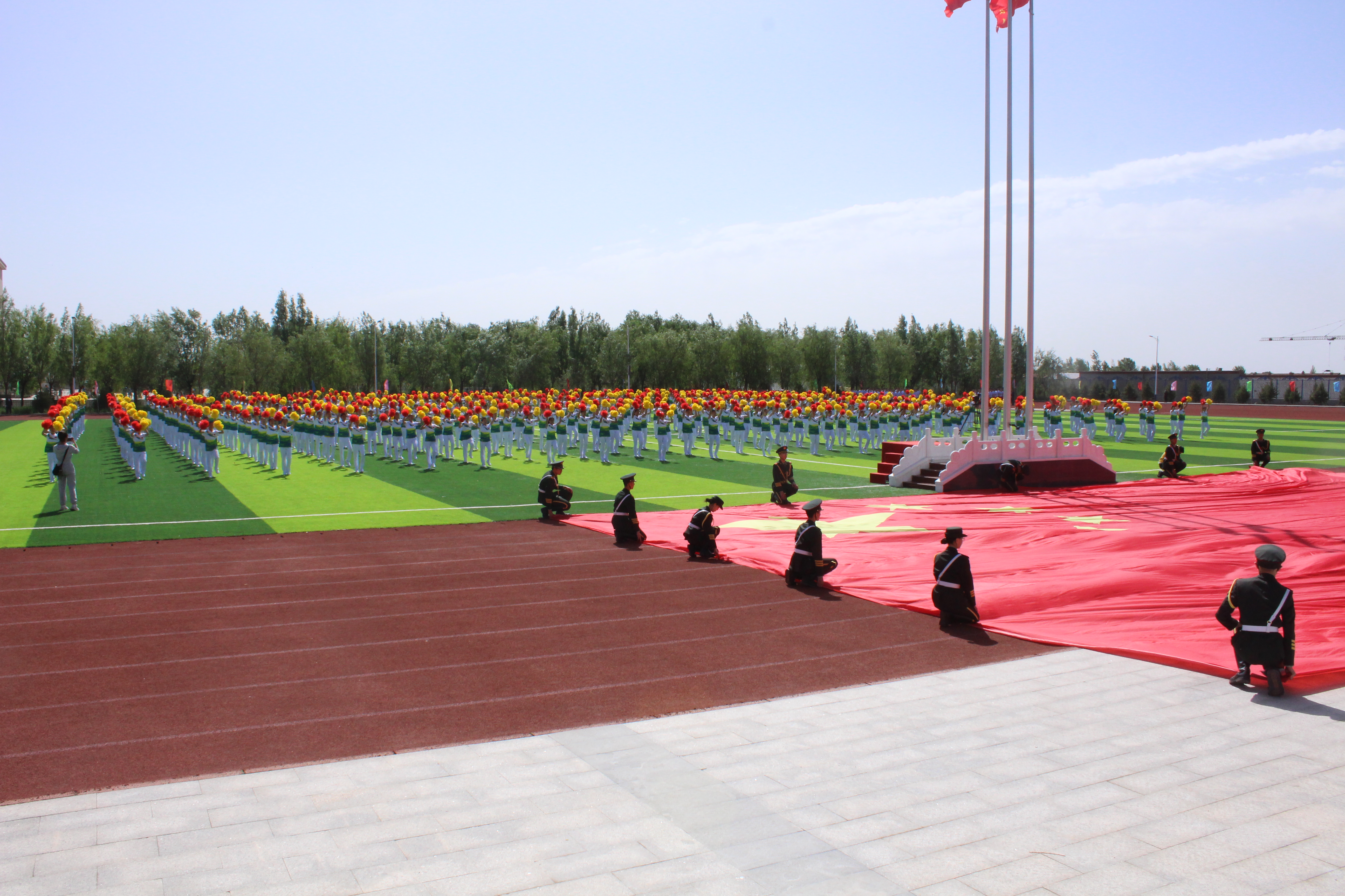 正值“六一”儿童节,土默特左旗教育系统开展第十一届红领巾艺术节“团体操比赛”。来自土左旗金山学校、蒙古族学校、回族小学等17所学校的五千余名学子在操场上整齐列队,和煦的阳光洒在一张张青春洋溢的脸上,他们精神抖擞,在轻松而舒缓的音律中,挥臂、转身、跳跃,动作中充满自信,微笑中洋溢着青春,充分展现了土左旗各族学子的活力与风采。