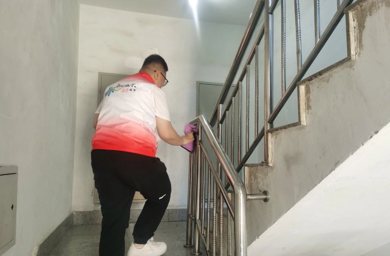 此次志愿服务活动主要内容为清理包联社区的和盛花园、和盛嘉苑两个小区院内、楼道内外卫生,包括公共宣传栏、展板、入户楼门、楼道内外等卫生清洁。暖心自愿服务小分队按照分工,对小区内公共设施进行统一清洁擦拭,院内废纸垃圾进行清理拾捡,对各自责任单元楼道门、楼道内外小广告、墙面屋顶脏污灰尘进行清理,楼梯扶手清洁擦拭。