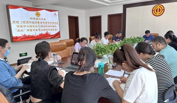 近日,新城区总工会召开全体干部职工学习会,专题学习了习近平总书记考察内蒙古时的重要讲话、在加强荒漠化综合防治和推进“三北”等重点生态工程建设座谈会上的讲话、在内蒙古调研边境管控和边防部队建设情况时的重要讲话。
