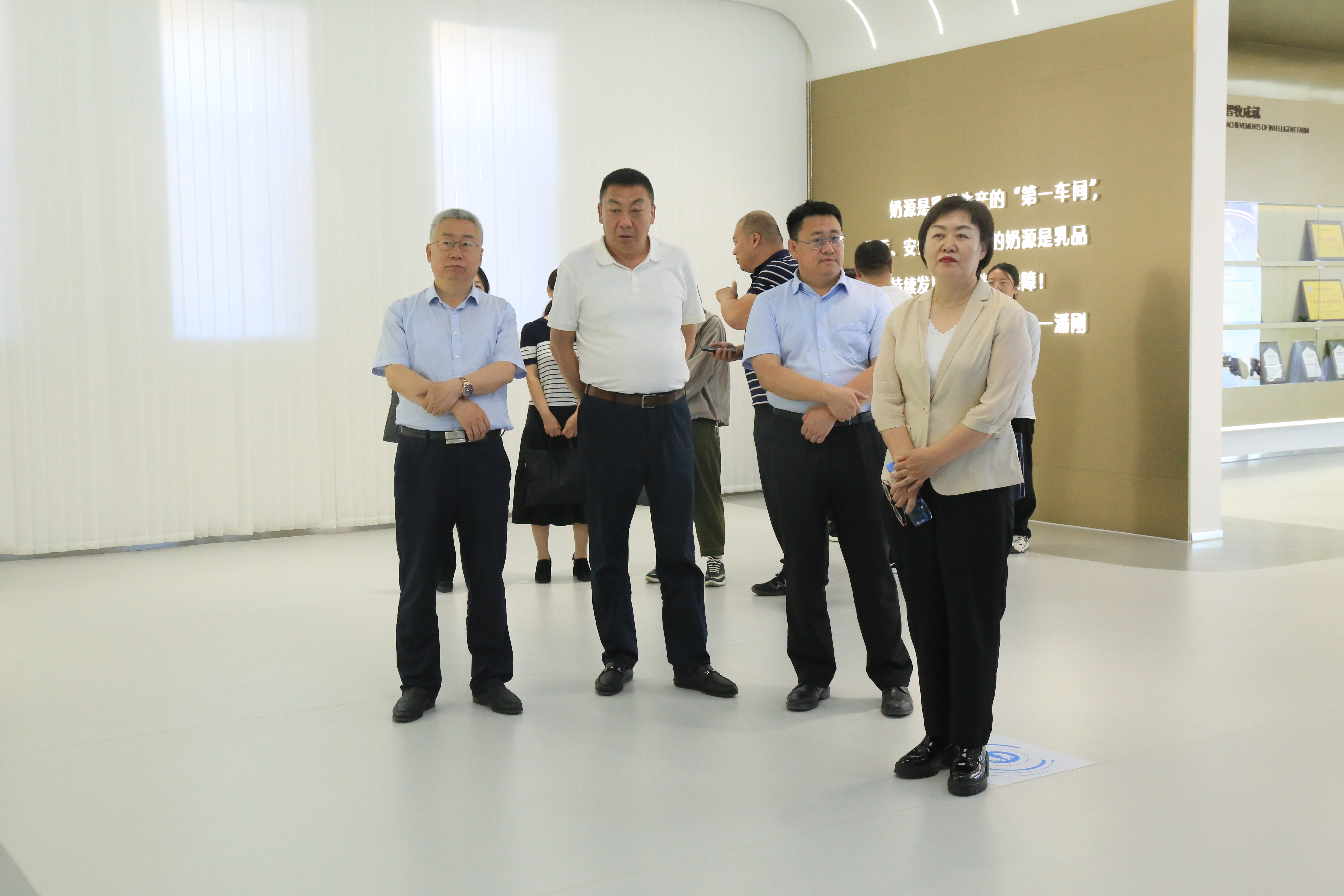 在敕勒川生态智慧牧场,调研组参观了牧场全智能无人牛舍,一台台智能化设备正在有序运转,奶牛“悠然”生活其中。调研组指出,牧场内青年职工多,但工作地点远离城区,要推动完善职工活动阵地建设,探索开展形式更多样、内容更丰富、职工更喜爱的工会活动,丰富职工的业余文化生活,营造充满活力的生产生活氛围。