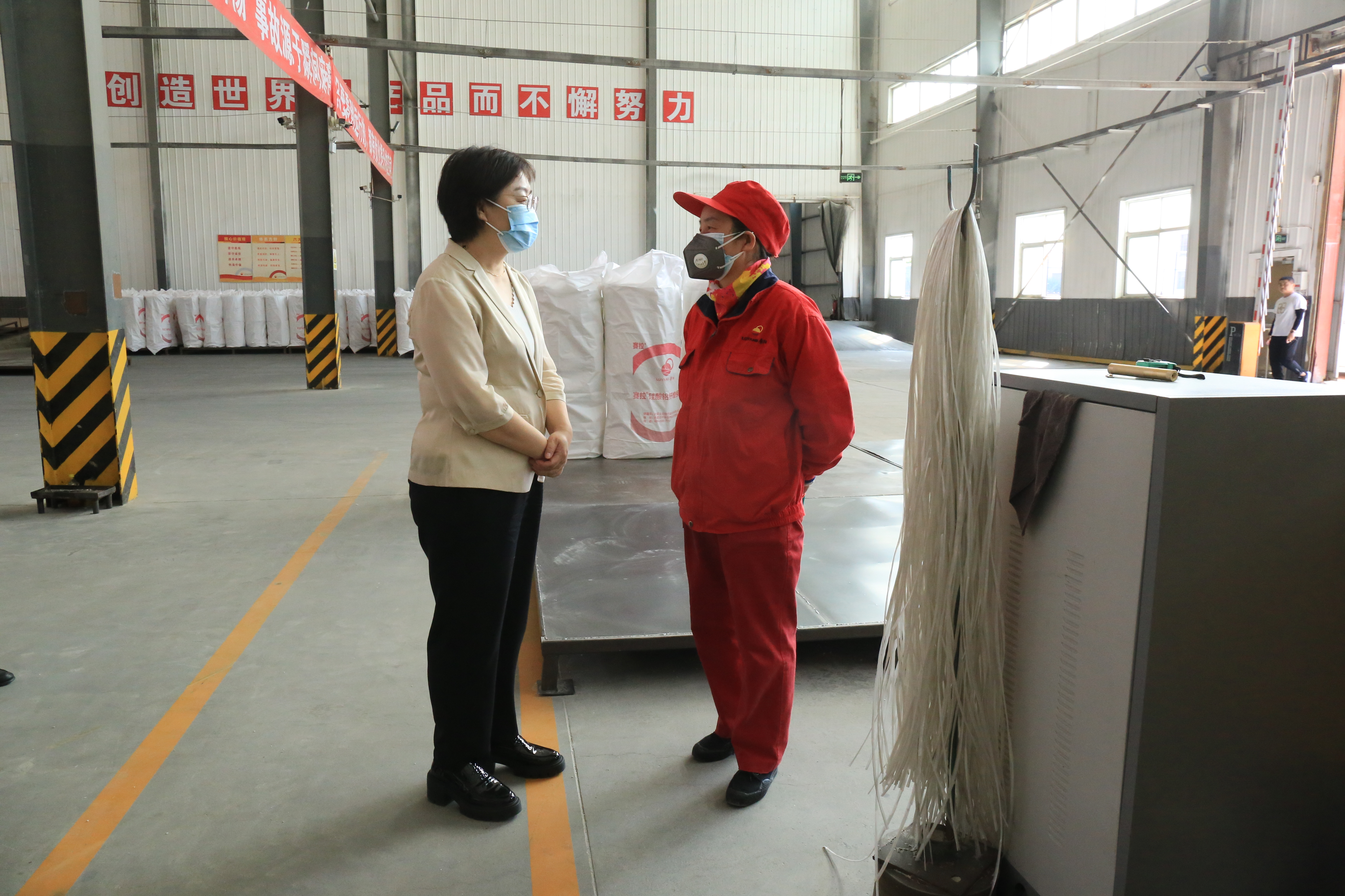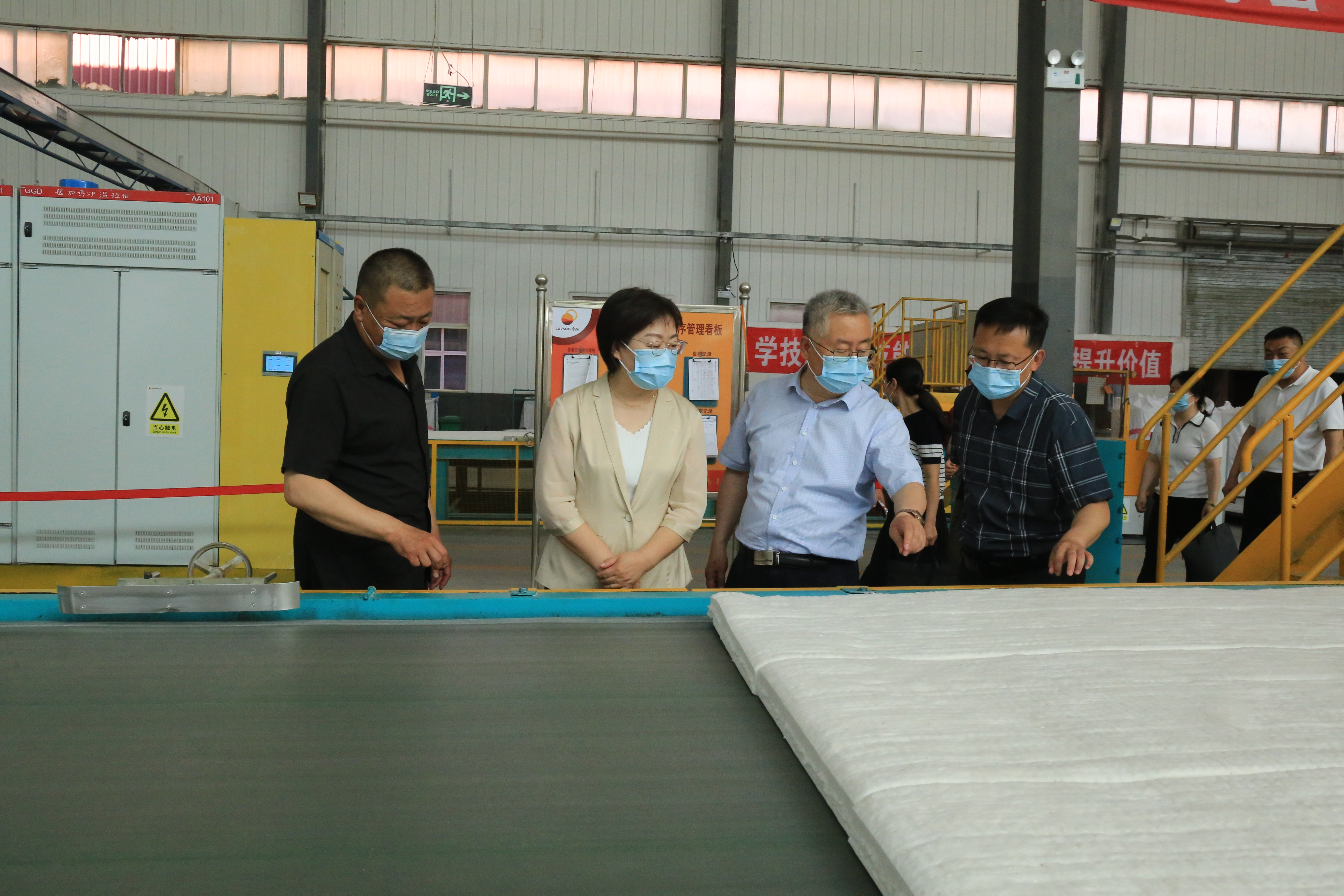 在内蒙古鲁阳节能材料有限公司,调研组实地查看了职工之家,并来到生产车间与一线劳模职工亲切交谈。调研组指出,企业专业技术人才多,要加强职工书屋建设,多补充一些与职业技能相关的专业书籍,使职工书屋真正成为广大职工岗位学习、岗位成才的重要园地。连日来,气温不断升高,调研组特意叮嘱一线职工在做好本职工作的同时注意安全生产,保重身体健康,做好降温防暑措施。