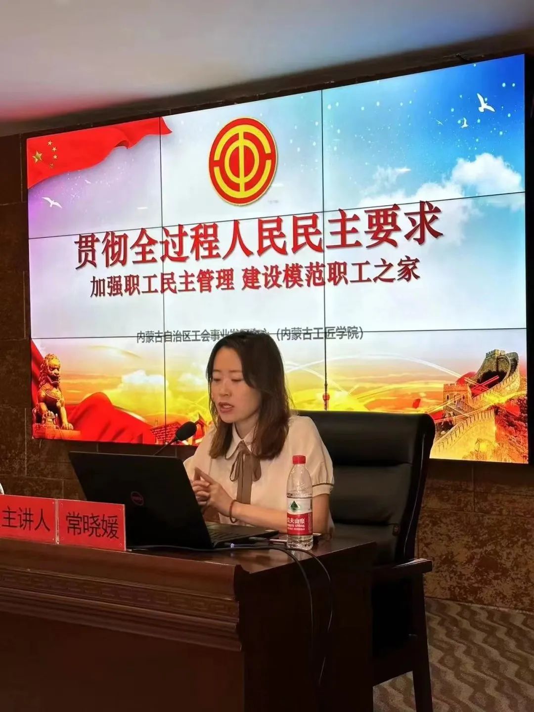 常晓媛老师以“贯彻全过程人民民主要求——加强职工民主管理、建设模范职工之家”为主题,紧紧围绕贯彻党的二十大精神、习近平总书记关于工人阶级和工会工作的重要论述,对工会基本理论、基层工会职工之家建设、职代会制度、民主管理和工会等相关知识内容进行了精彩的解读。
