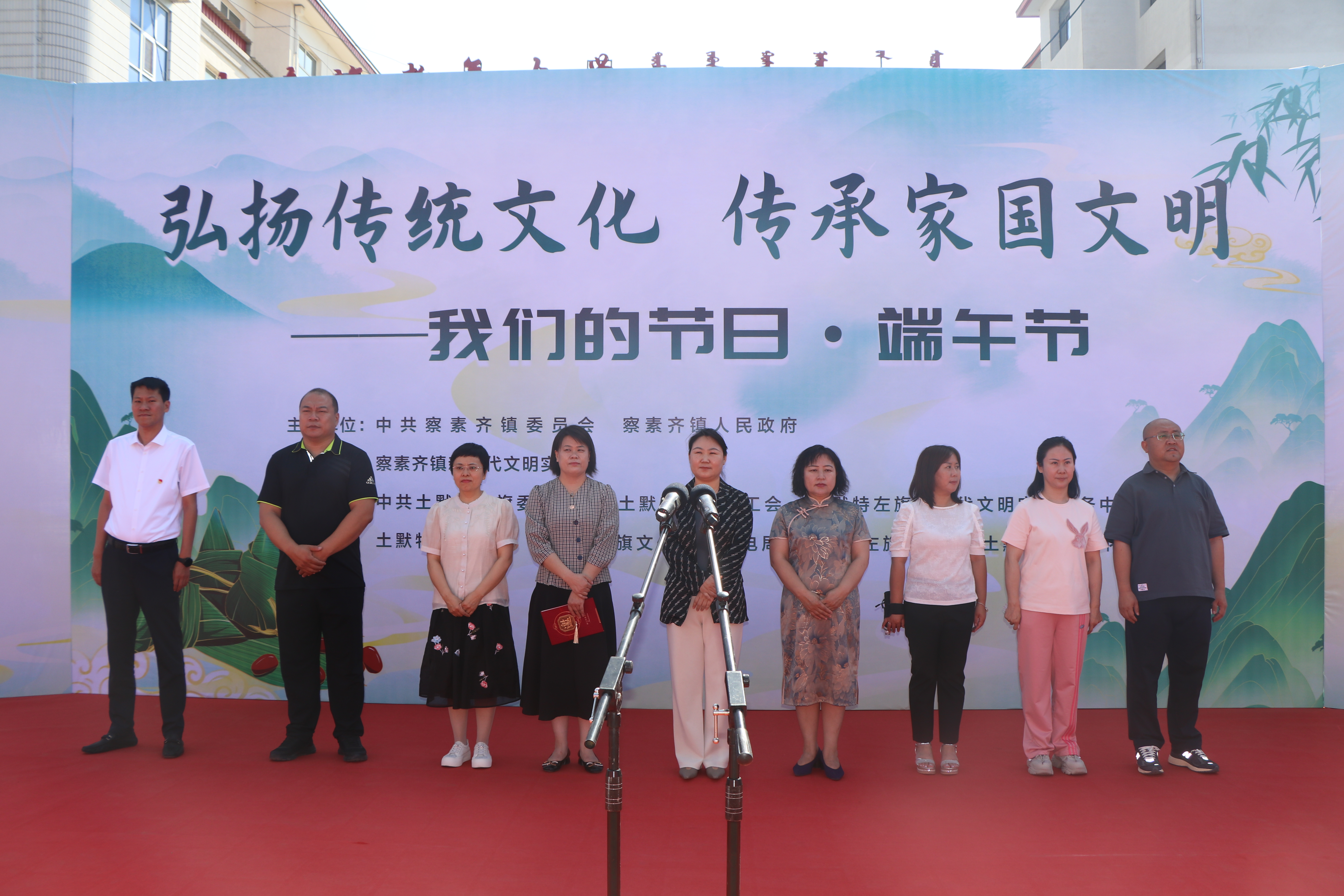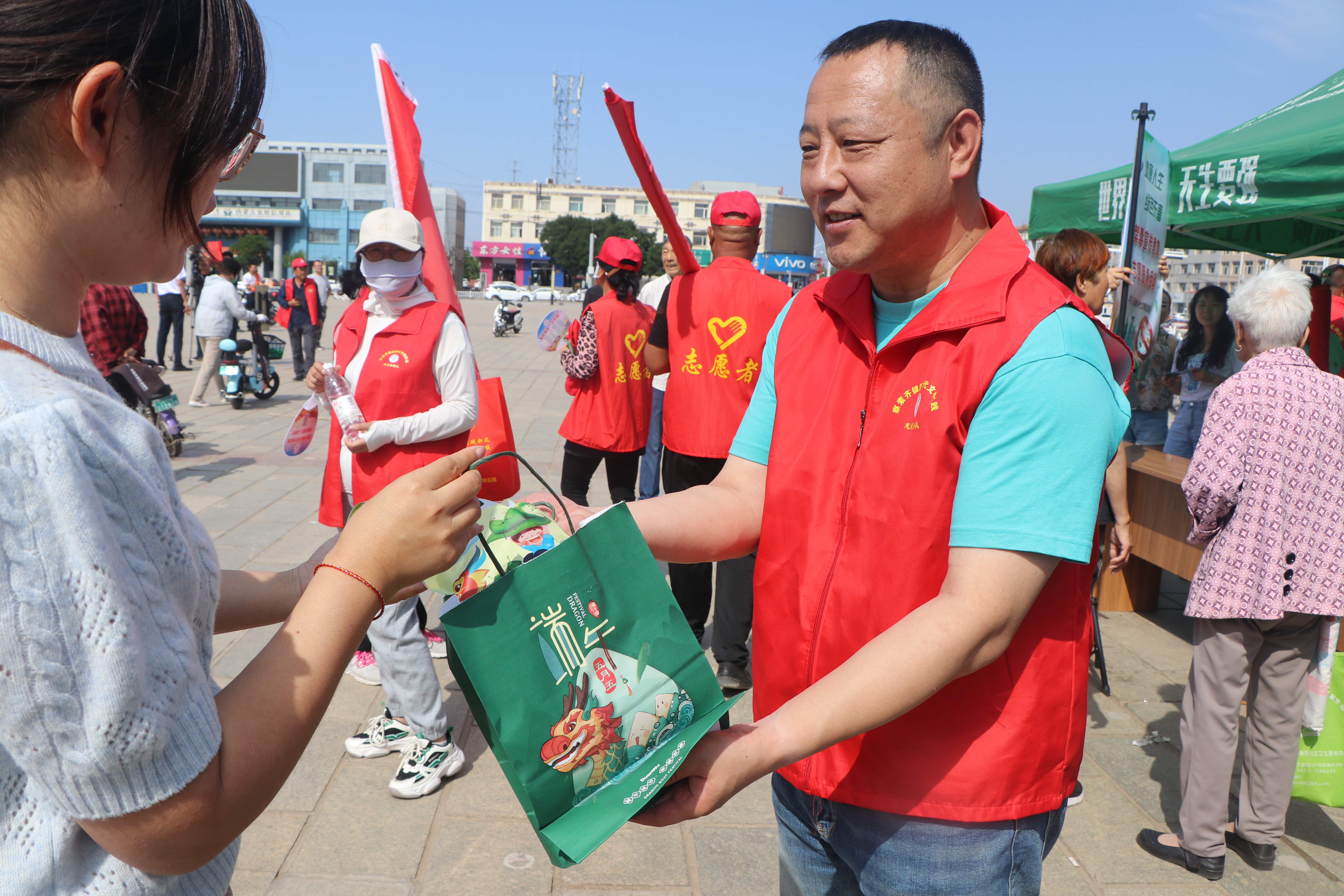 6月21日上午,由察素齐镇人民政府主办,察素齐镇新时代文明实践中心承办,旗总工会等多家单位协办的“弘扬传统文化,传承家国文明”——我们的节日·端午节活动在原政府广场举行。活动现场志愿者们向群众宣传端午节传统习俗,推广移风易俗活动,发放扇子、五色线、粽子、香包等节日礼物,让广大职工群众在节日期间感受传统节日的文化氛围。