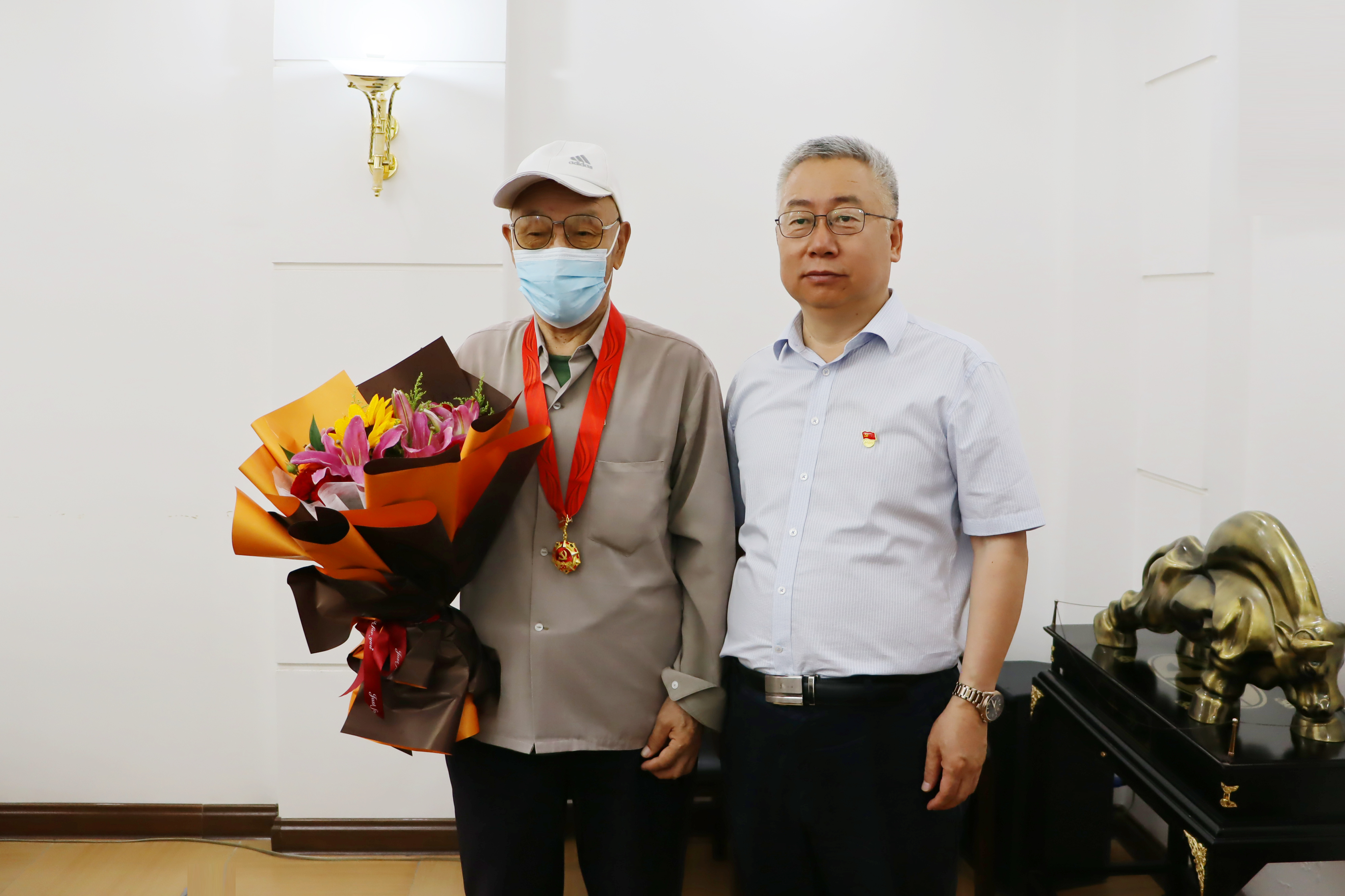 在中国共产党成立102周年之际,市总工会于6月26日举行“光荣在党50年”纪念章颁发仪式。市总工会党组书记、副主席汪俊亭为老党员马瑞颁发佩戴纪念章,送上鲜花和祝福。