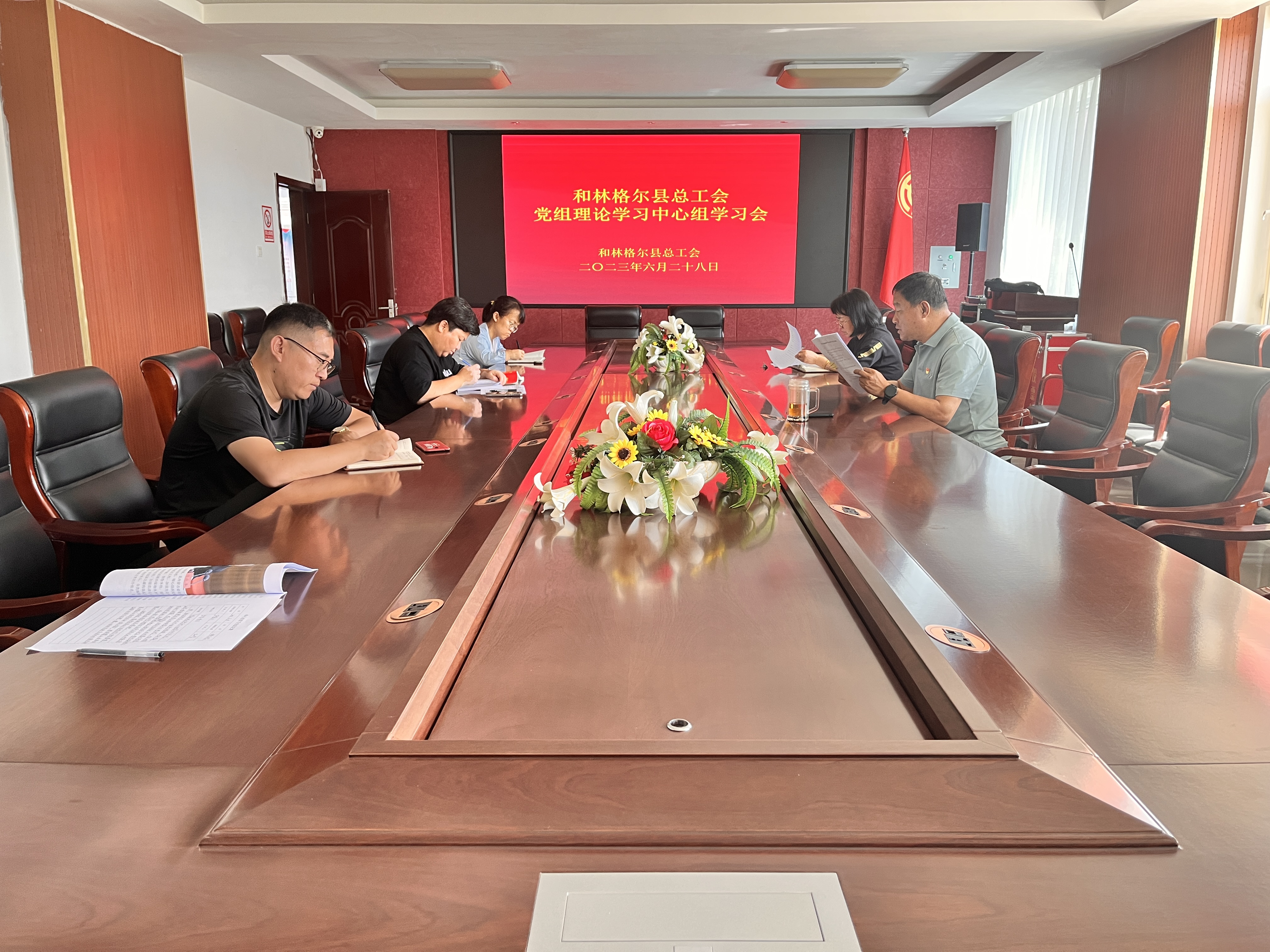6月28日,和林格尔县总工会召开党组理论学习中心组学习会,深入学习贯彻习近平总书记考察内蒙古时的重要指示重要讲话精神。