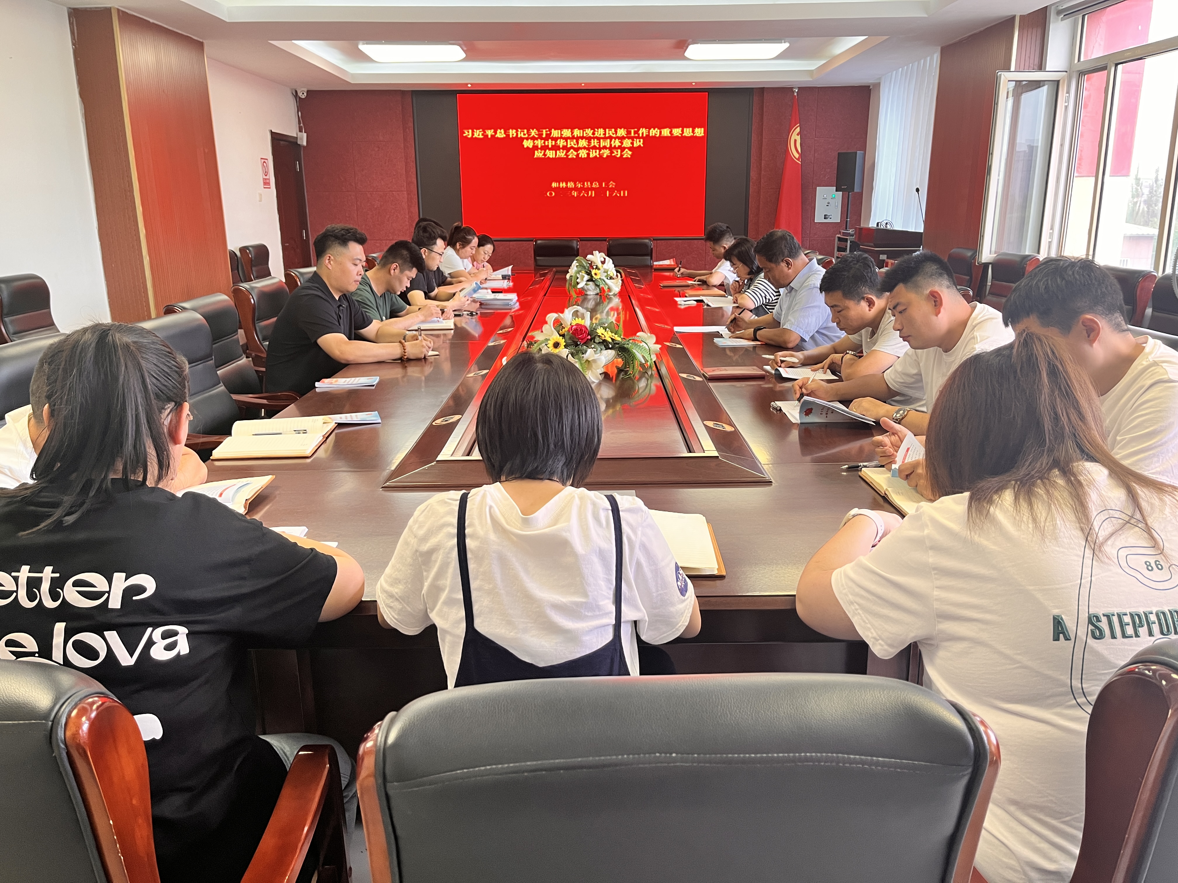 为进一步铸牢中华民族共同体意识,扎实开展民族团结进步创建工作,上半年,和林格尔县总工会开展了系列集中学习、中心组学习、主题实践活动和主题党日活动,近期,和林格尔县总工会组织全体干部职工开展民族团结进步应知应会知识集中晨学及现场闭卷测试工作。