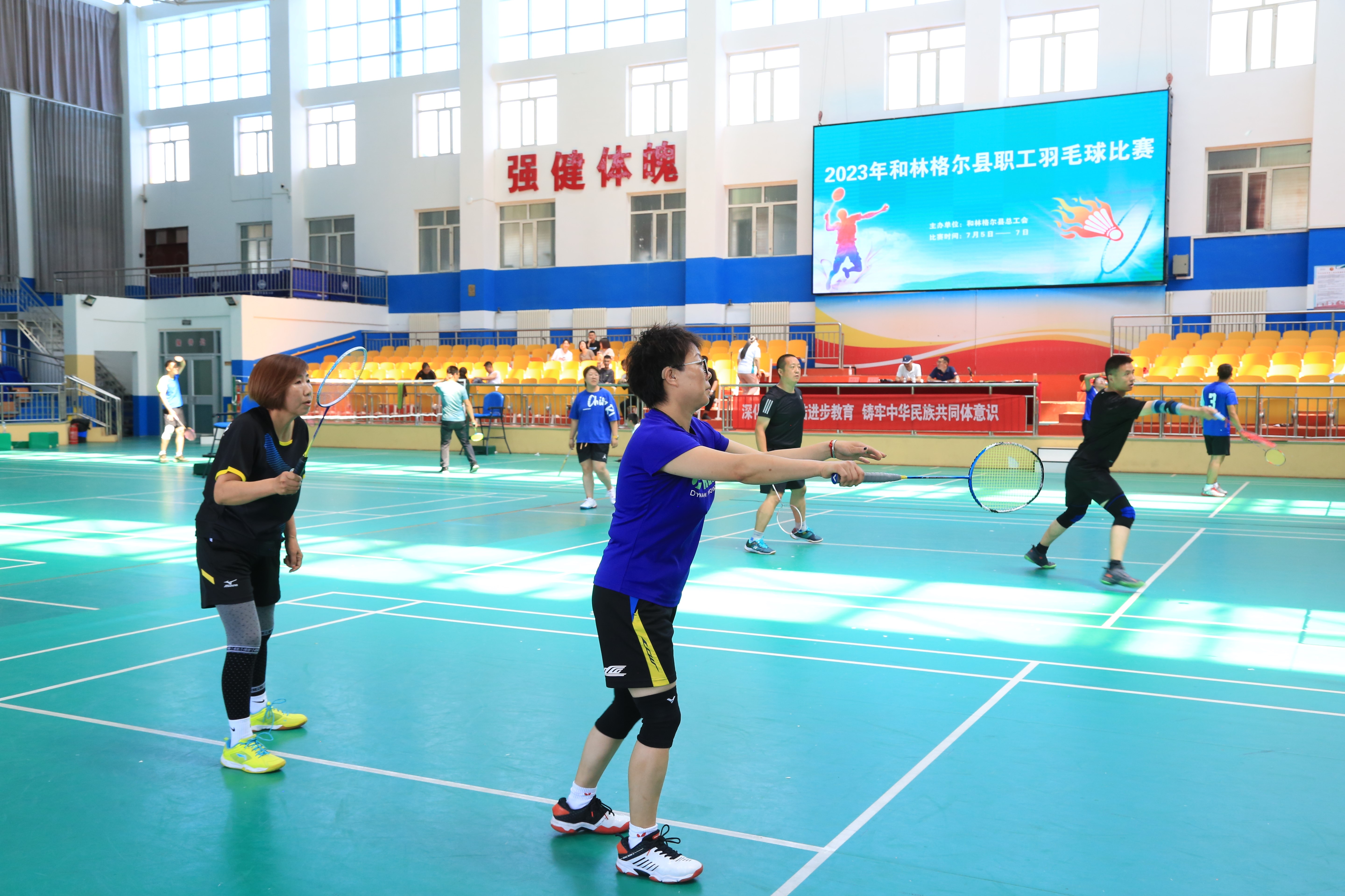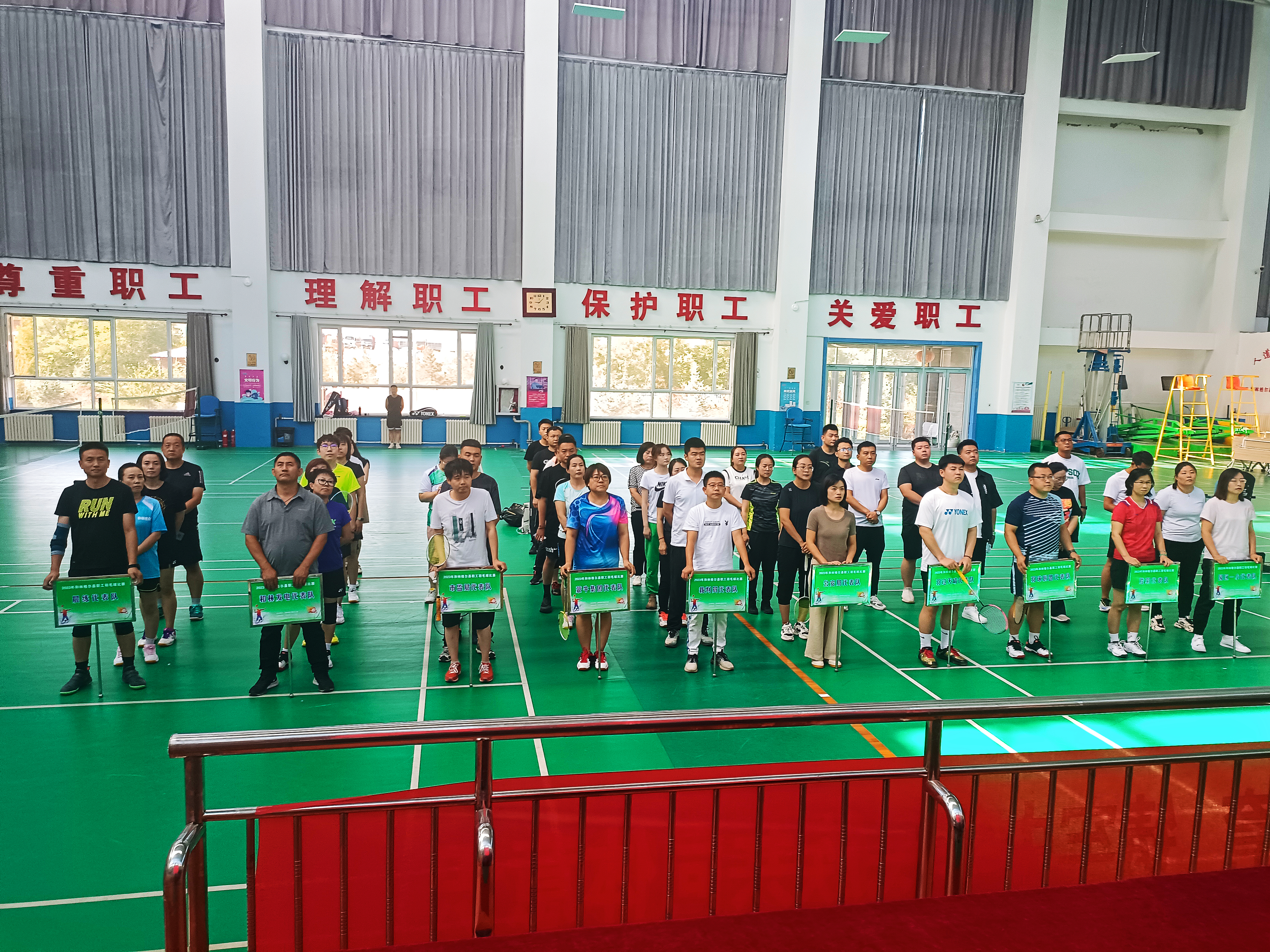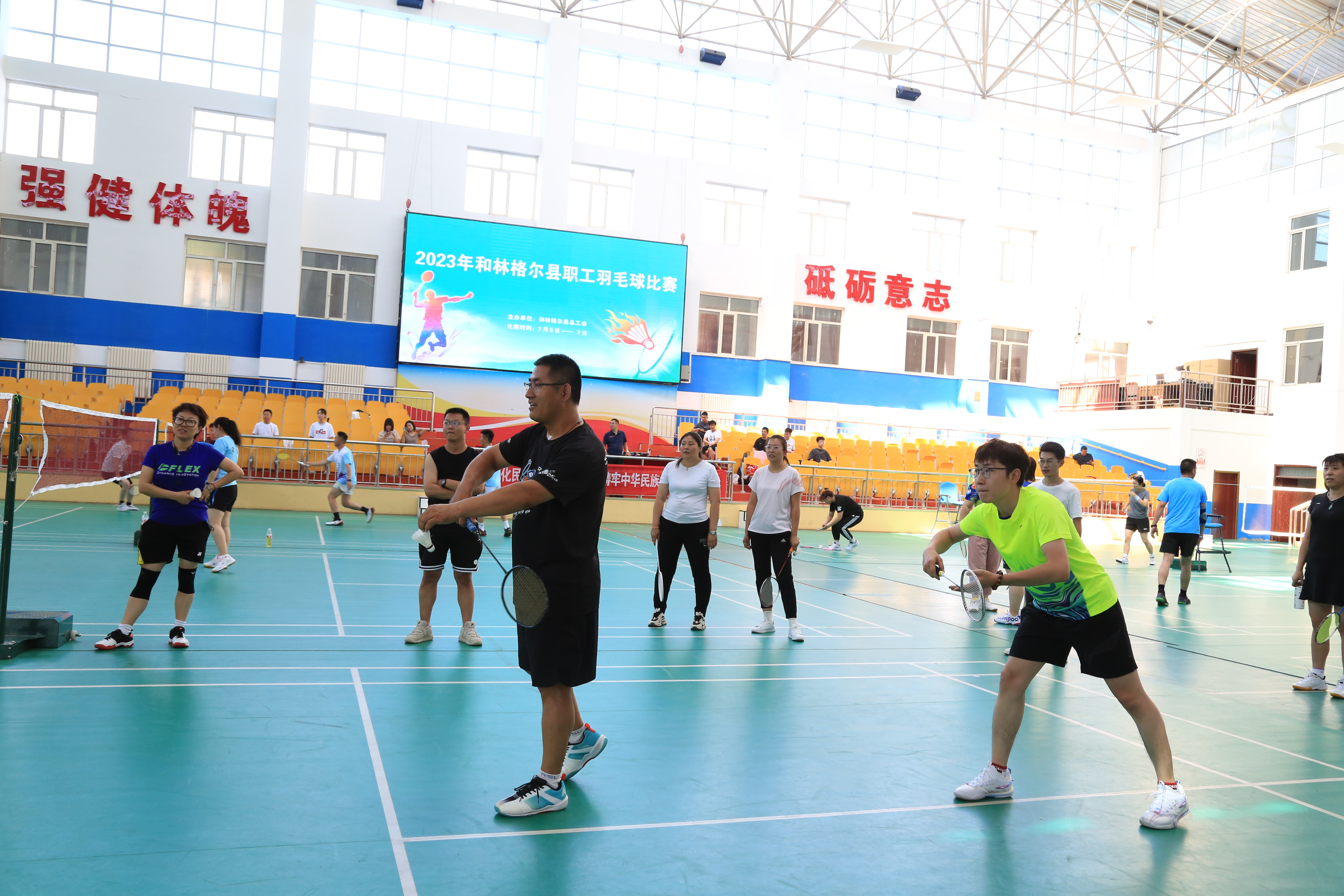 为深入学习贯彻习近平新时代中国特色社会主义思想,学习贯彻党的二十大精神,铸牢中华民族共同体意识,助力民族团结进步创建和全国文明城市创建工作,聚焦“旗县级工会加强年”,不断增强工会组织的吸引力和职工的凝聚力,鼓舞全县各族职工“奋进新征程、建功新时代”,为推动和林格尔高质量发展聚力争先,7月5日,由和林格尔县总工会主办的2023年全县职工羽毛球比赛正式开幕。