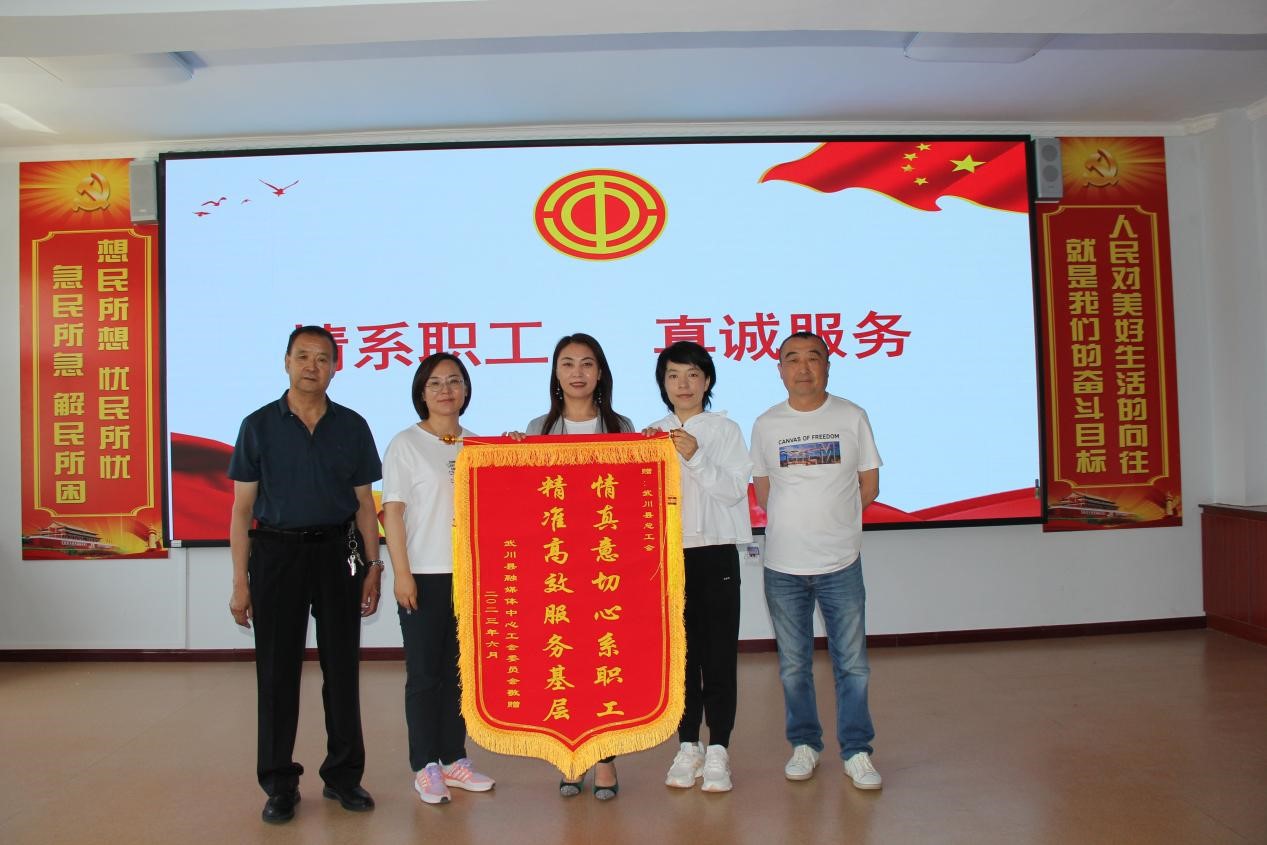 7月4日,武川县融媒体中心工会委员会将一面印有“情真意切心系职工·精准高效服务基层”的锦旗送到了武川县总工会,诚挚感谢总工会对基层工会的真情帮助和关怀。