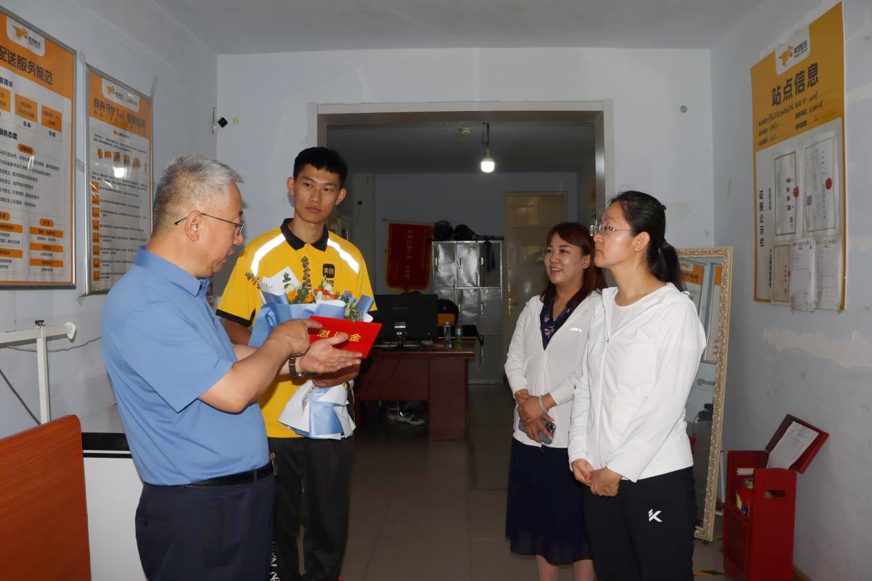 7月13日,呼和浩特市总工会慰问了见义勇为美团外卖小哥张善荣,向身边英雄致以敬意,并送去慰问金,鼓励社会正能量行为。