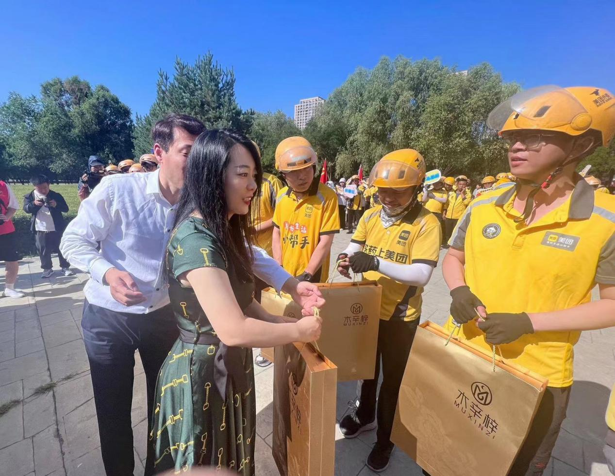 活动中,赛罕区总工会副主席李慧为美团骑手送上了慰问品,并代表区总工会送上节日祝福,对他们冒着高温酷暑、坚守一线的敬业精神给予了高度赞誉,并叮嘱骑手们在日常工作中注重骑行安全,做好防暑降温,高温下工作要关爱自己,做好安全防护。