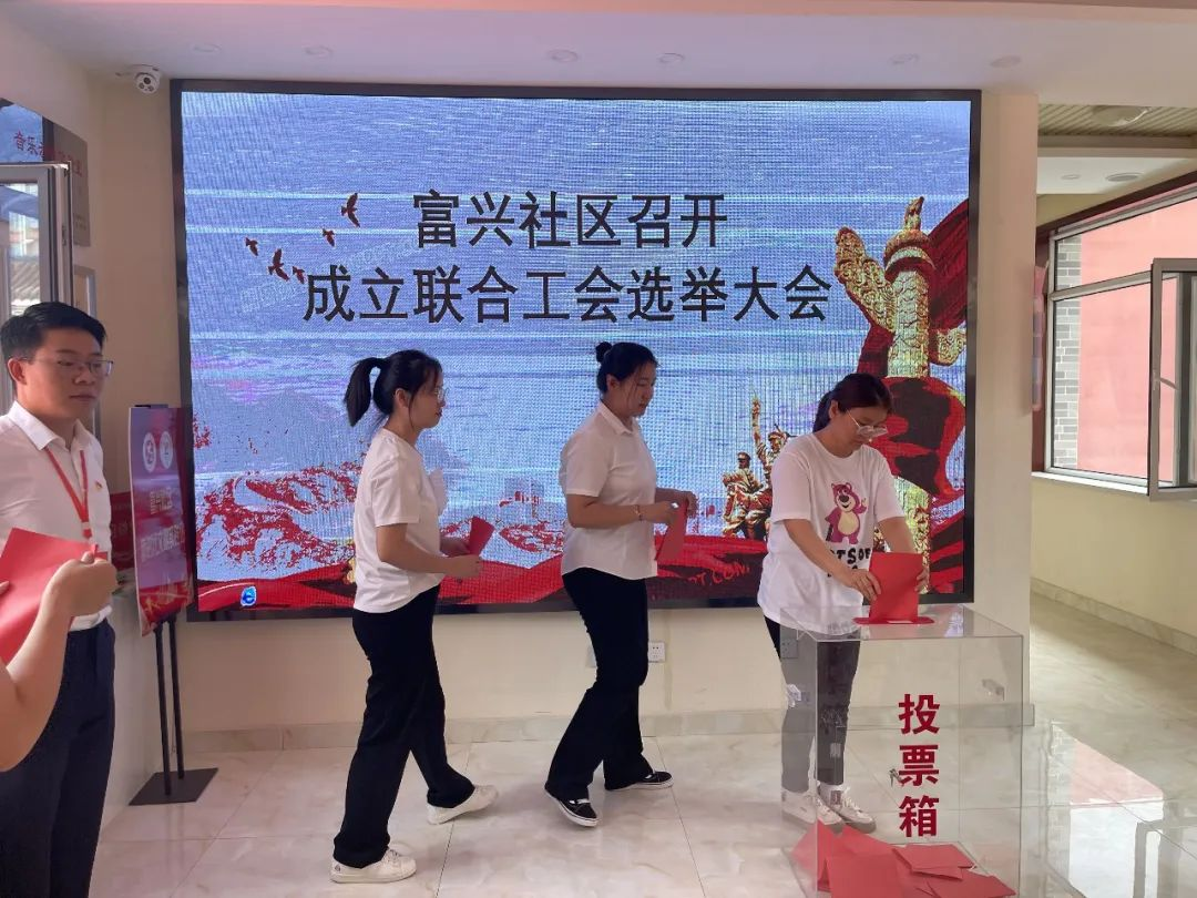座谈会后,富兴社区进行了第一届会员代表选举大会,根据社区实际情况,推选出20名会员代表,代表们认真行使民主权利,投下自己庄严的一票。最后选举共产生了富兴社区联合工会委员会第一届委员会委员3名、经费审查委员会委员3名、委员会主席1名和经费审查委员会主任1名。新当选的工会主席王一旨表示富兴社区联合工会将不断加强基层工会组织建设,做好社会组织会员入会工作,吸引各类小微企业广泛加入到工会组织,充分发挥基层工会组织密切联系广大职工群众的桥梁纽带作用。
