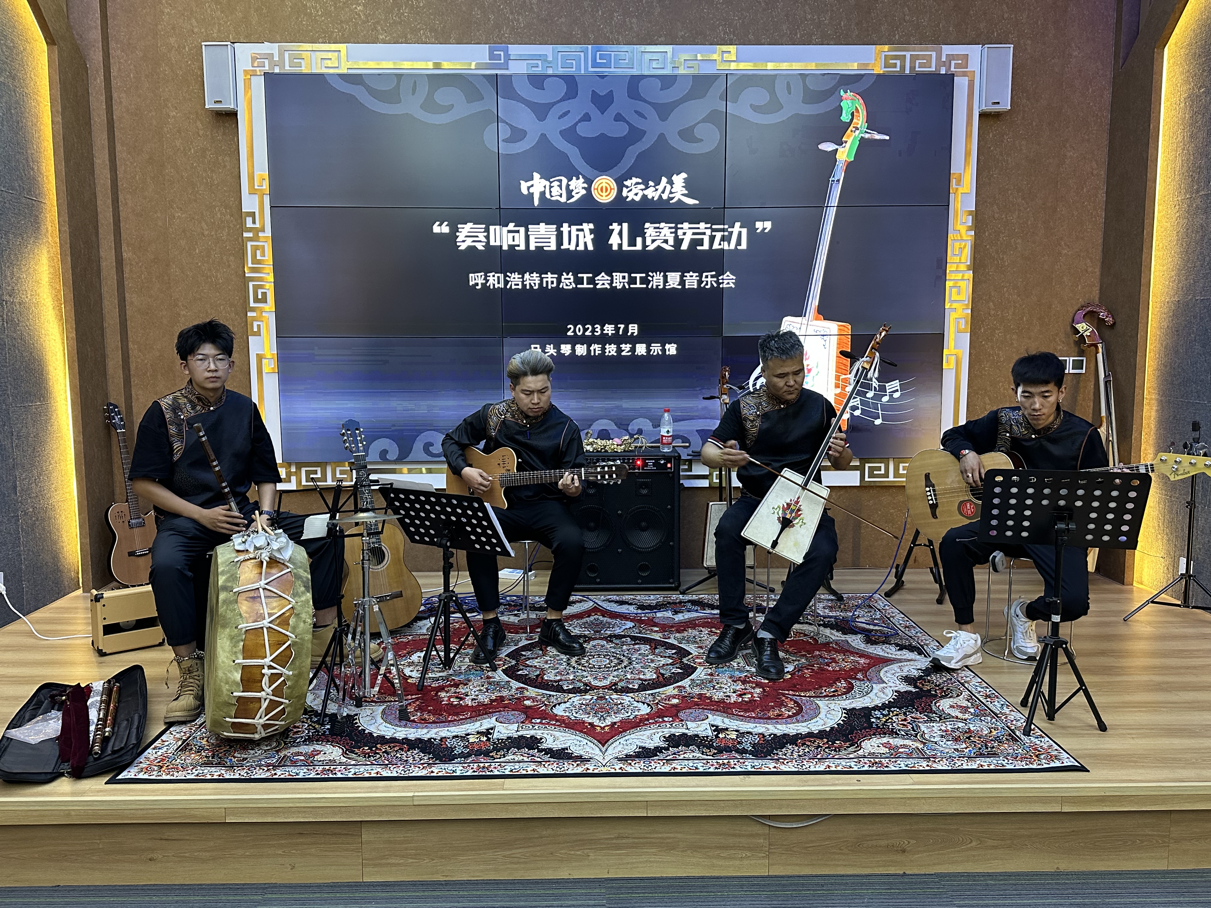 为进一步增强我市职工群众的文化自信,铸牢中华民族共同体意识,为职工群众搭建便捷度高、参与度广泛的高质量业余文化生活平台,7月21日,由市总工会主办的“中国梦·劳动美--“奏响青城 礼赞劳动”职工消夏音乐会在我市乌力吉创新工作室(马头琴制作技艺展示馆)音乐厅拉开序幕。