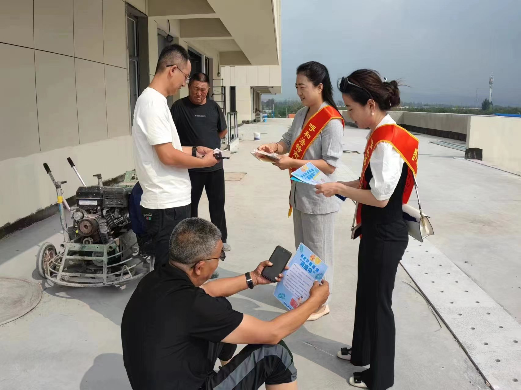 为深入贯彻落实习近平法治思想,培养广大职工群众自觉守法意识,养成遇事找法的习惯,提高解决问题靠法的能力,7月21日,回民区总工会在呼和浩特市第一中学实验学校建筑工地开展了“尊法守法·携手筑梦”服务农民工公益法律服务行动。