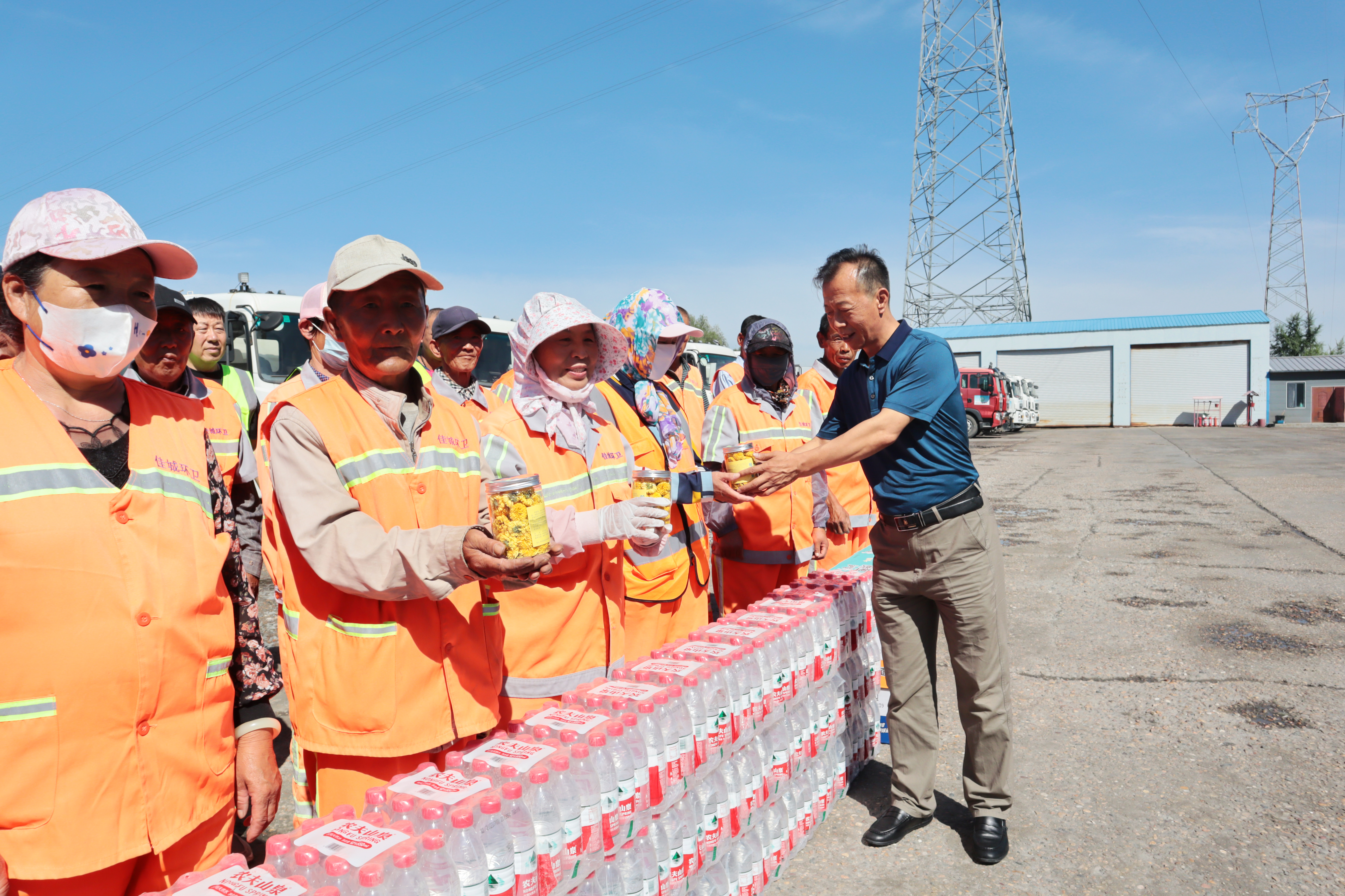 炎炎夏日,滚滚热浪,七月的呼和浩特高温持续。为保障环卫工人高温作业的身体健康和安全,7月25日上午,市总工会党组成员、副主席冀罕钢代表市总工会来到内蒙古佳城城市发展有限公司看望和慰问了奋战在高温下的一线环卫工人,给他们送上夏日避暑清凉物资。